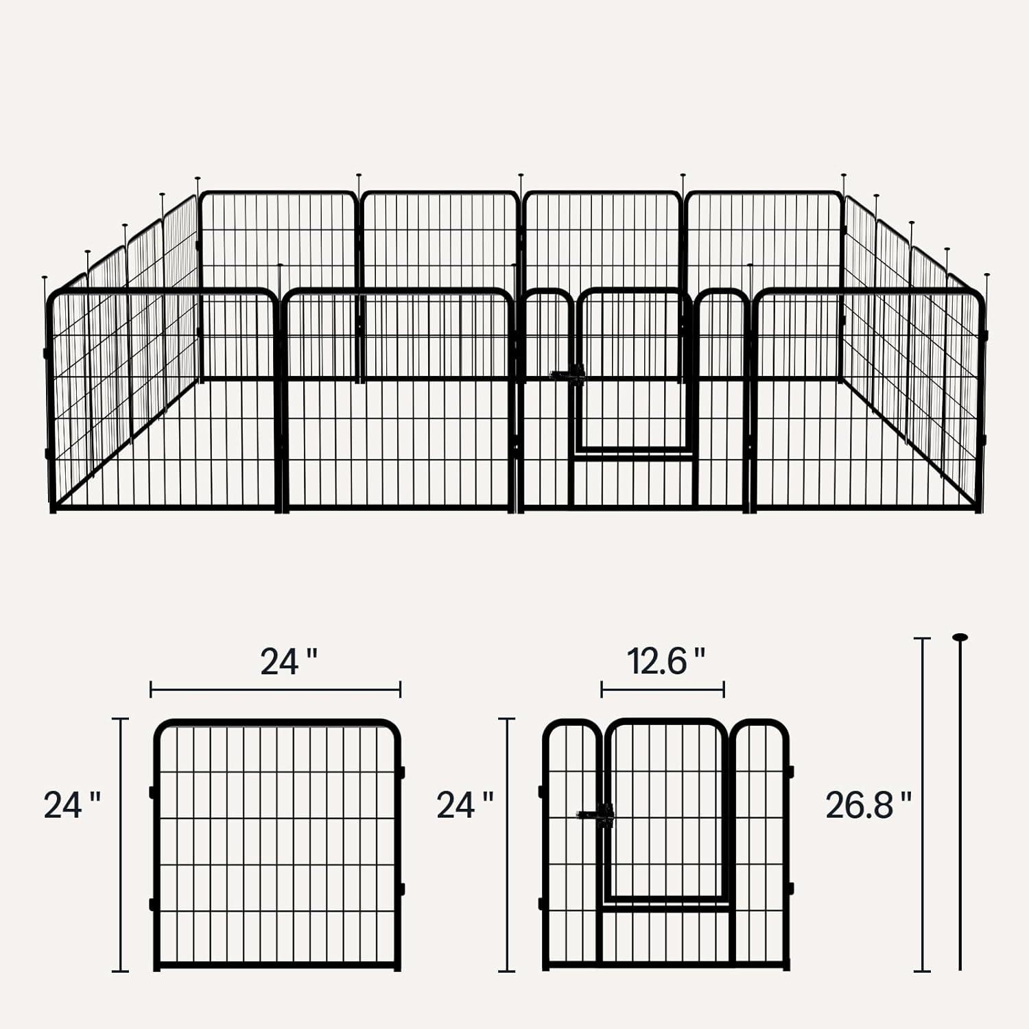 Amazon Basics Dog Playpen, 16 Panels Metal Fence with Door, Foldable for Indoor and Outdoor Use, Suitable for Small to Medium Sized Dogs, 30 Inch Height, Black(Black)