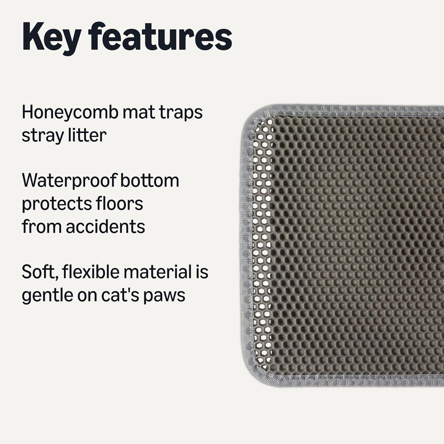 Amazon Basics Double-Layer Cat Litter Mat – 15″ x 24″ Honeycomb Design, Waterproof & Urine-Proof, Non-Slip Scatter Control Trapper Mat, Easy Clean, Soft on Paws, Grey(30”)