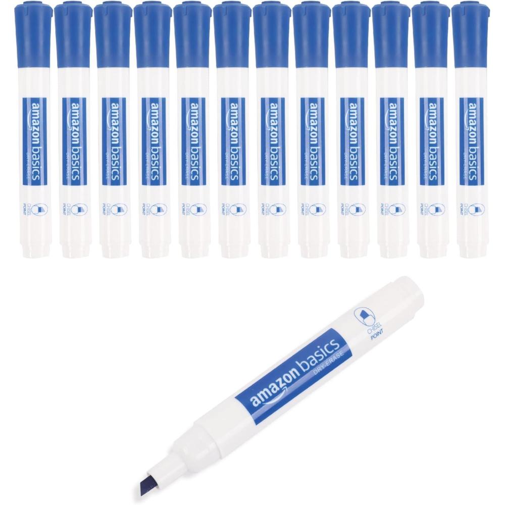 Amazon Basics Dry Erase Markers For Whiteboards, Chisel Tip, Low-Odor, Black, Red, Blue, Pack of 3(Blue)