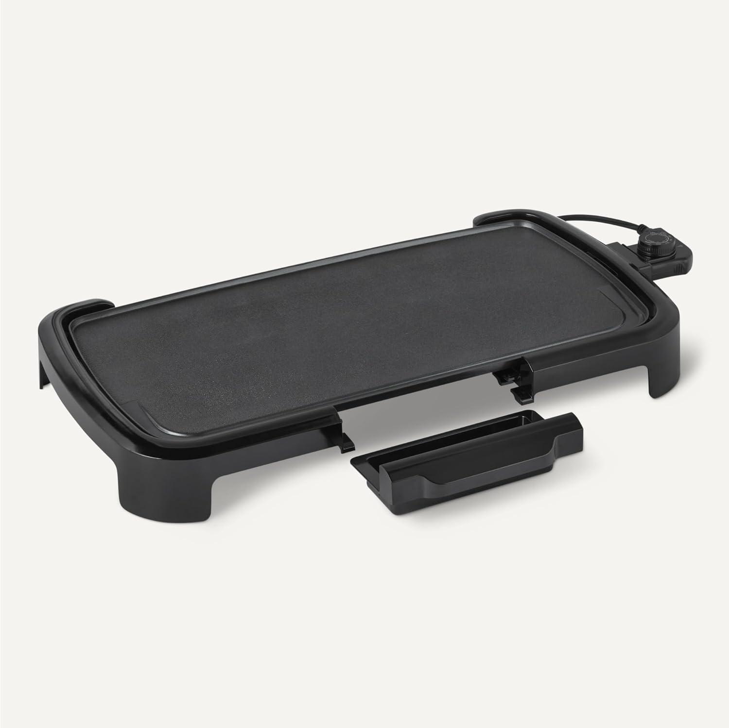Amazon Basics Electric Griddle with Nonstick Ceramic Coating, Flat Grill for Pancake, 10 x 20 inches, Black