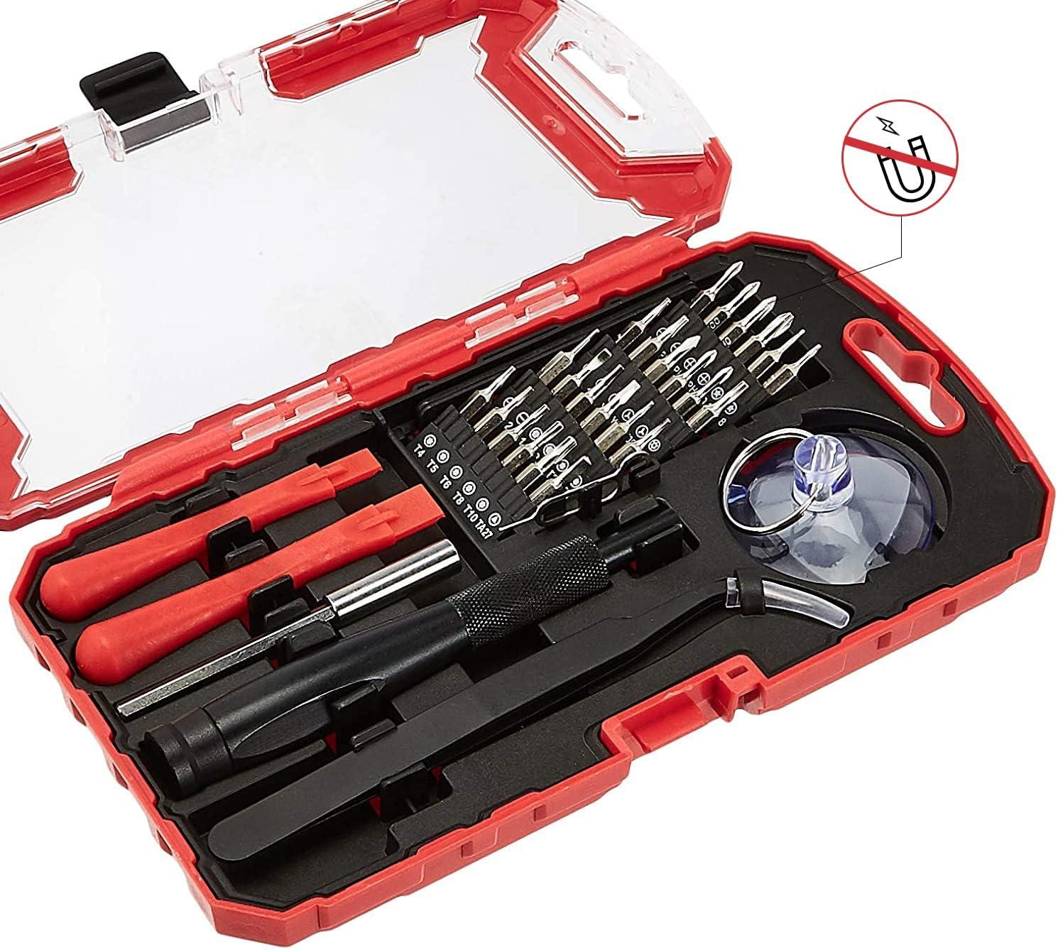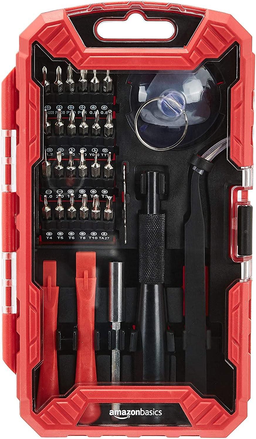 Amazon Basics Electronics Screwdriver Set, 32-Piece Tool Kit for Repair and Maintenance, Red(32-Piece)