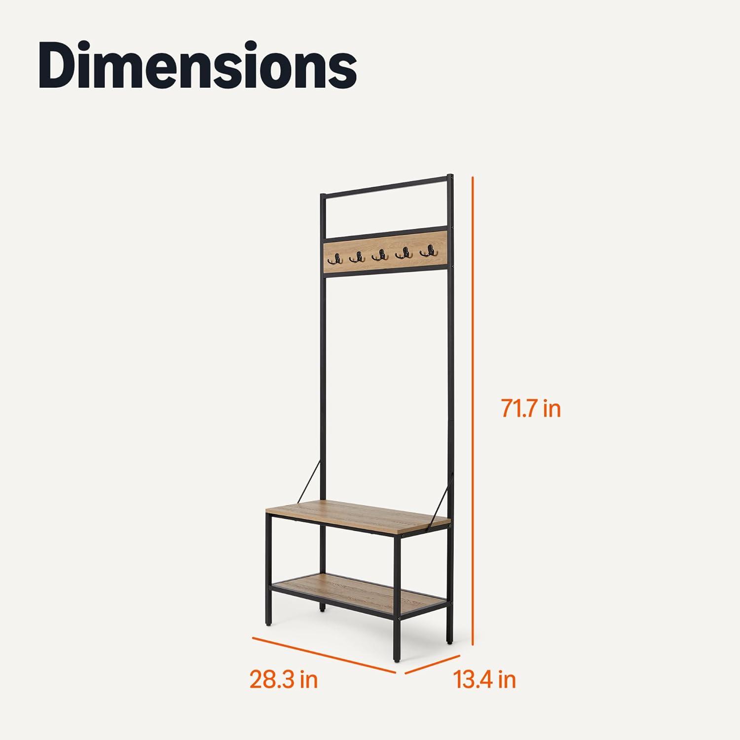 Amazon Basics Entry Bench with Hooks, Hall Tree with Shoe Storage Bench, Steel Frame, Oak Finish