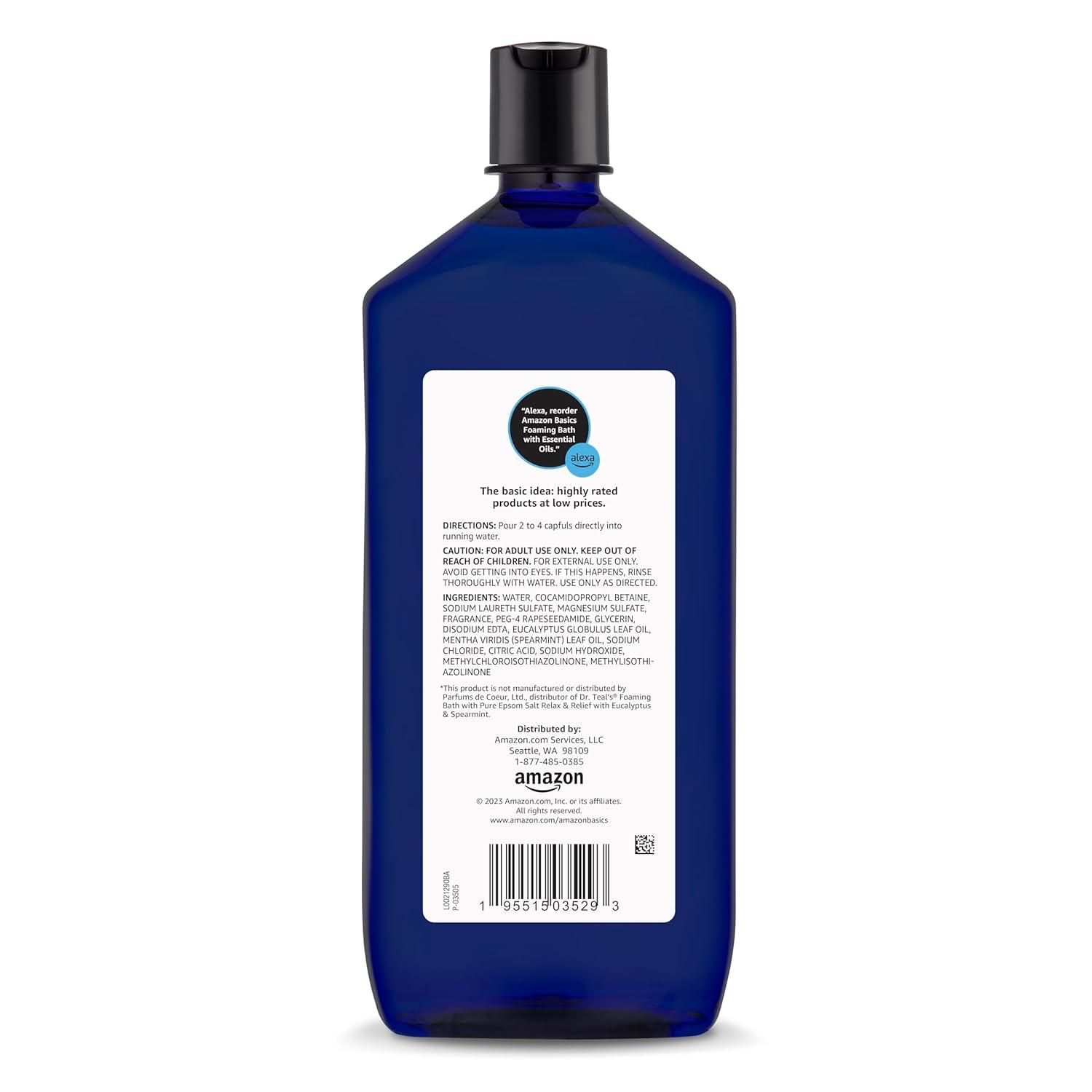 One 34-fluid ounce bottle of Amazon Basics Eucalyptus & Spearmint Scented Foaming Bath