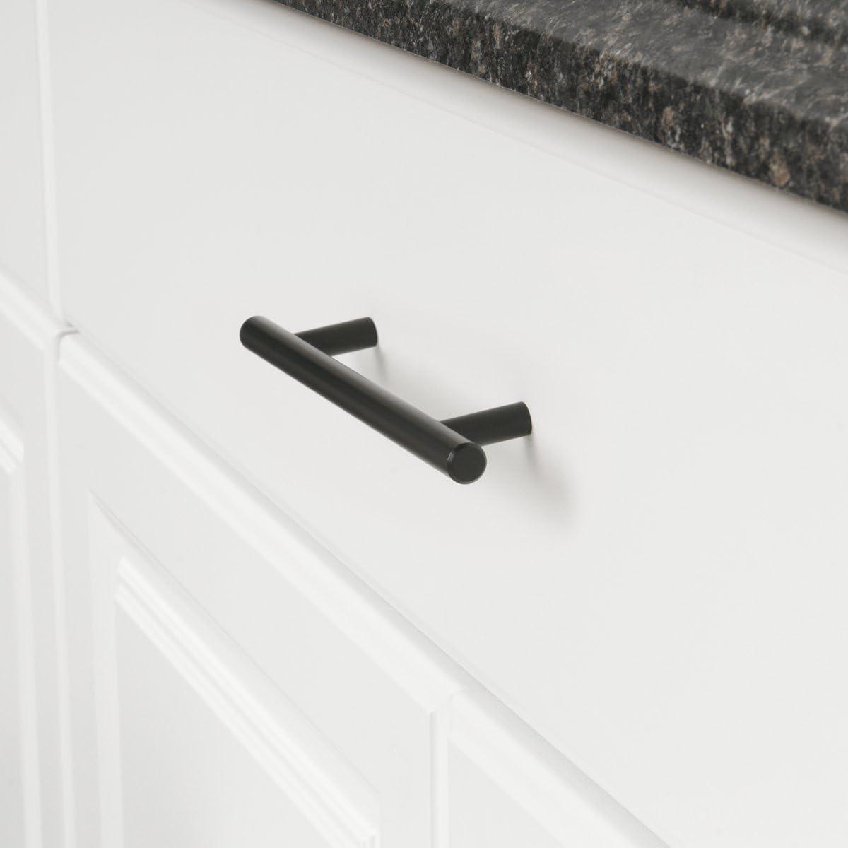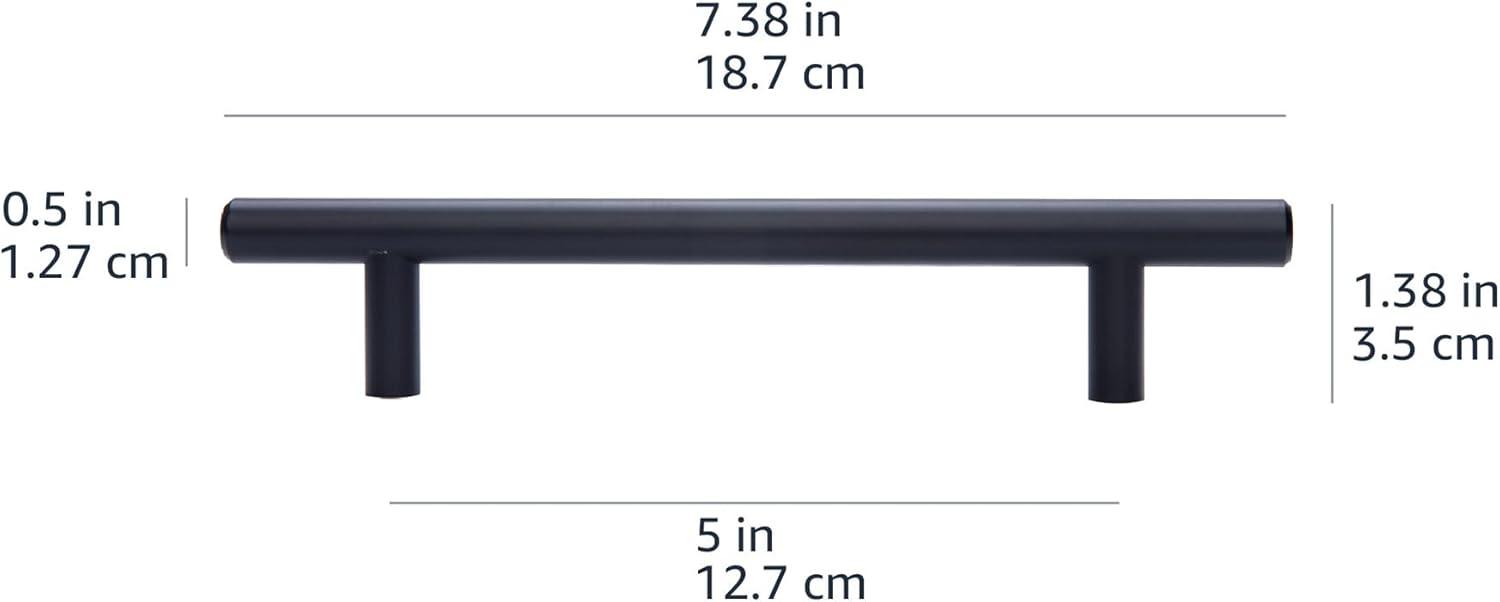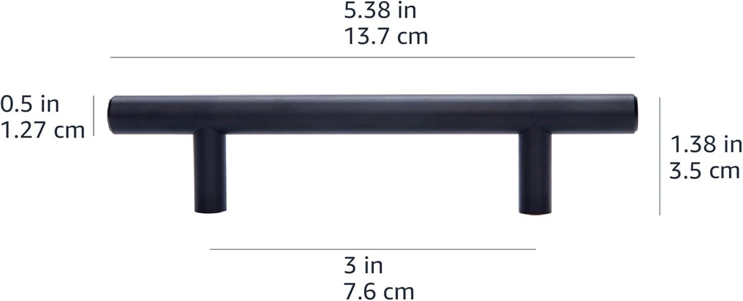Amazon Basics Euro Bar Cabinet Handle (1/2-inch Diameter), 5.38-inch Length (3-inch Hole Center), Satin Nickel, 10-Pack