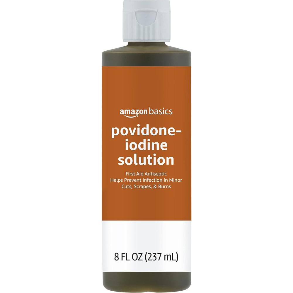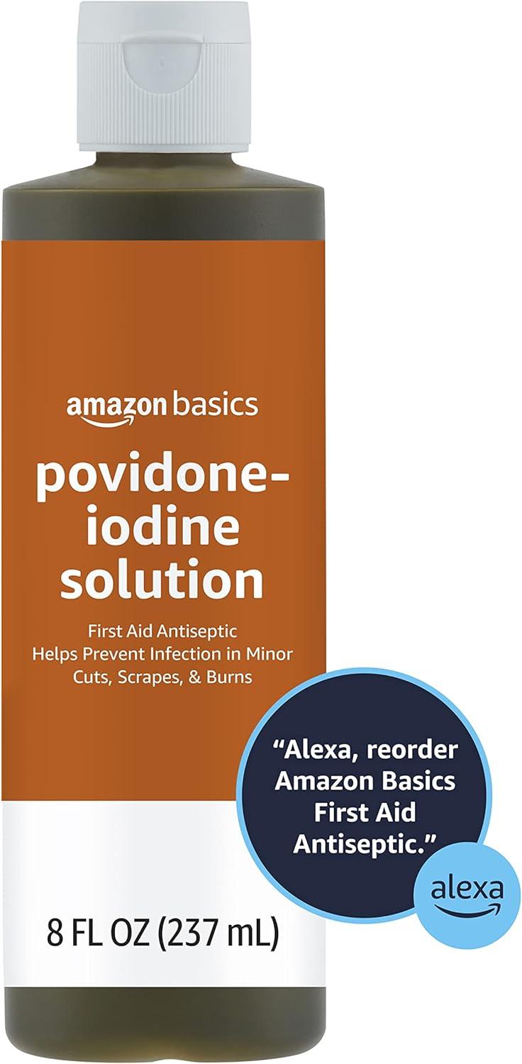 Amazon Basics First Aid Antiseptic, 10% Povidone Iodine Solution First Aid Antiseptic, Unflavored, 8 Fluid Ounces, 1-Pack (Previously Solimo)(8 Fl Oz (Pack of 1))