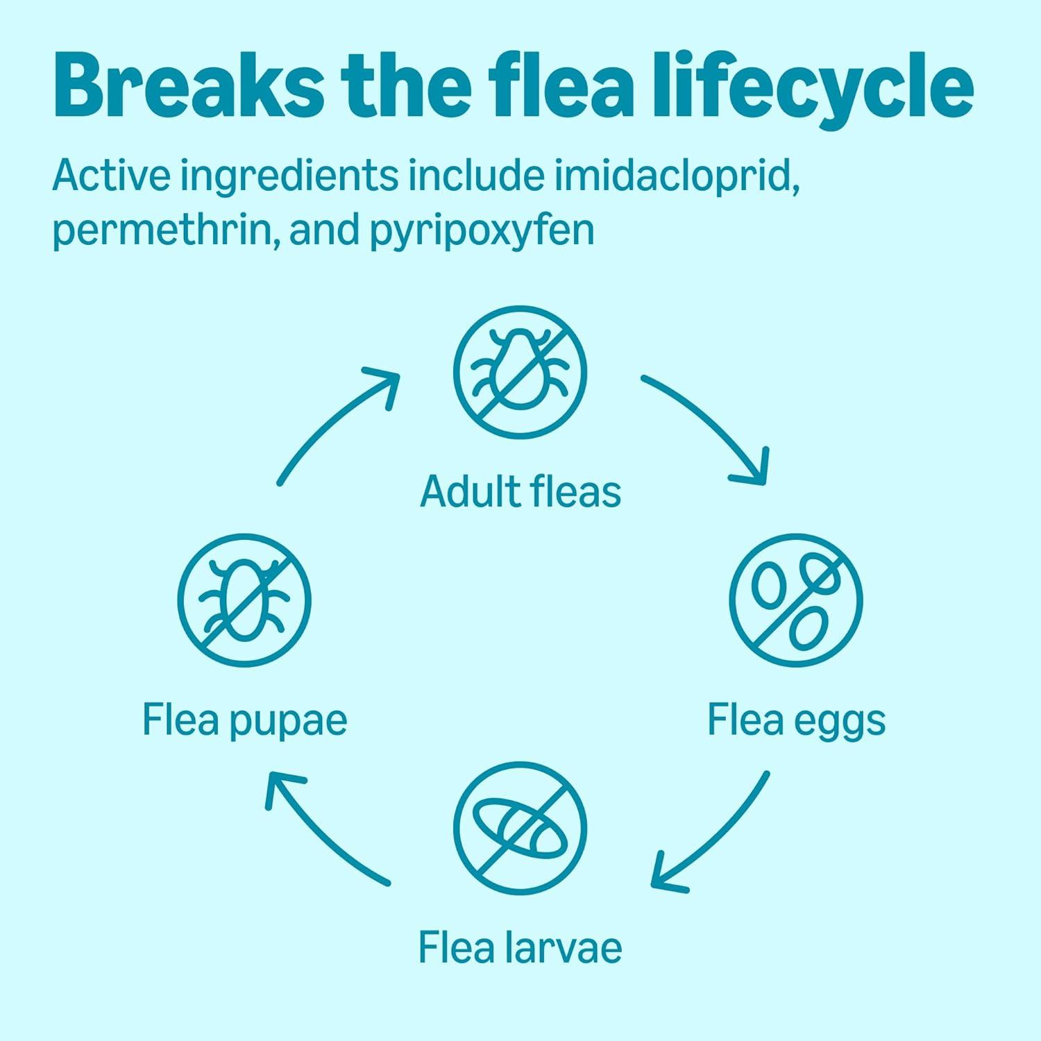 Amazon Basics Flea, Tick & Mosquito starts eliminating fleas and ticks within 24 hours of treatment