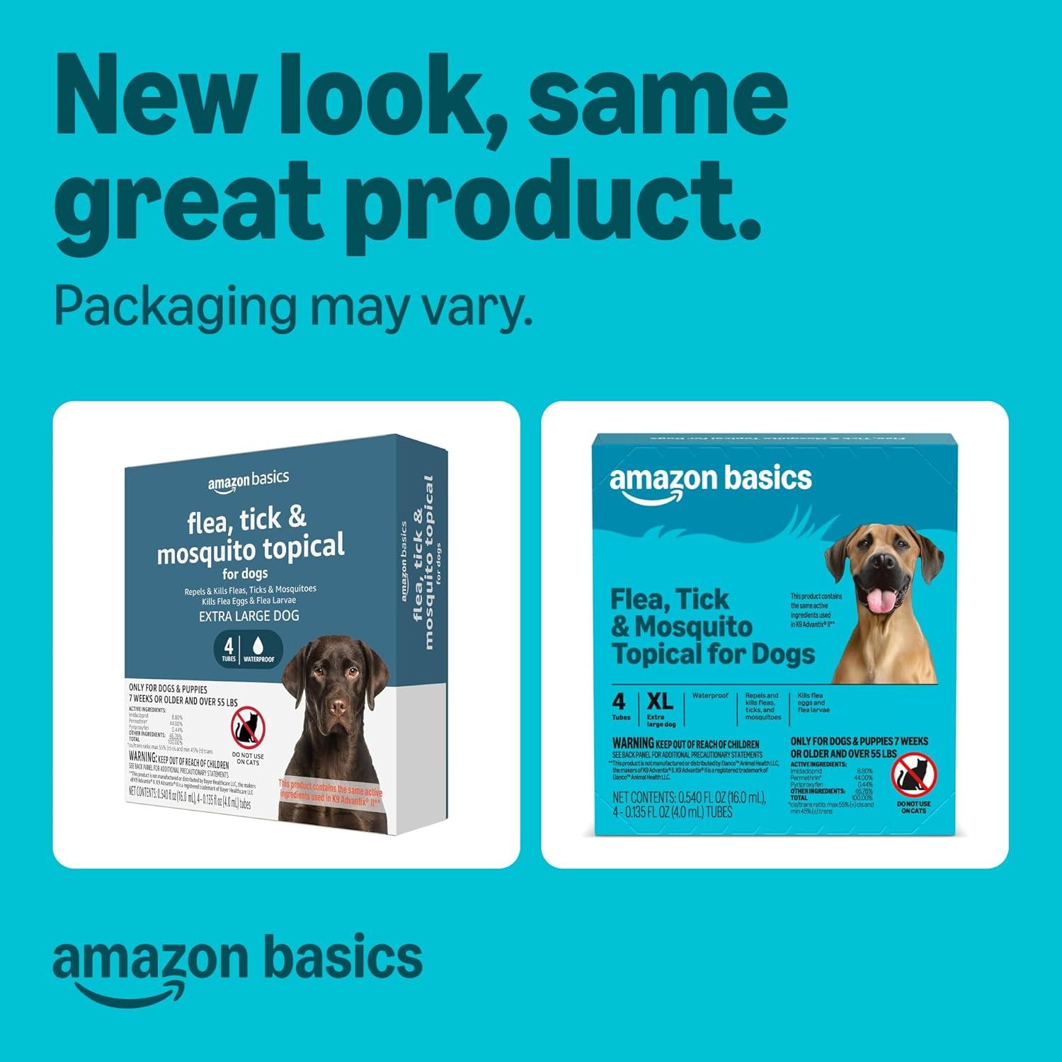 Amazon Basics Flea, Tick & Mosquito Topical Treatment for X-Large Dogs (over 55 pounds), 6 Count (Previously Solimo)(4 Count)