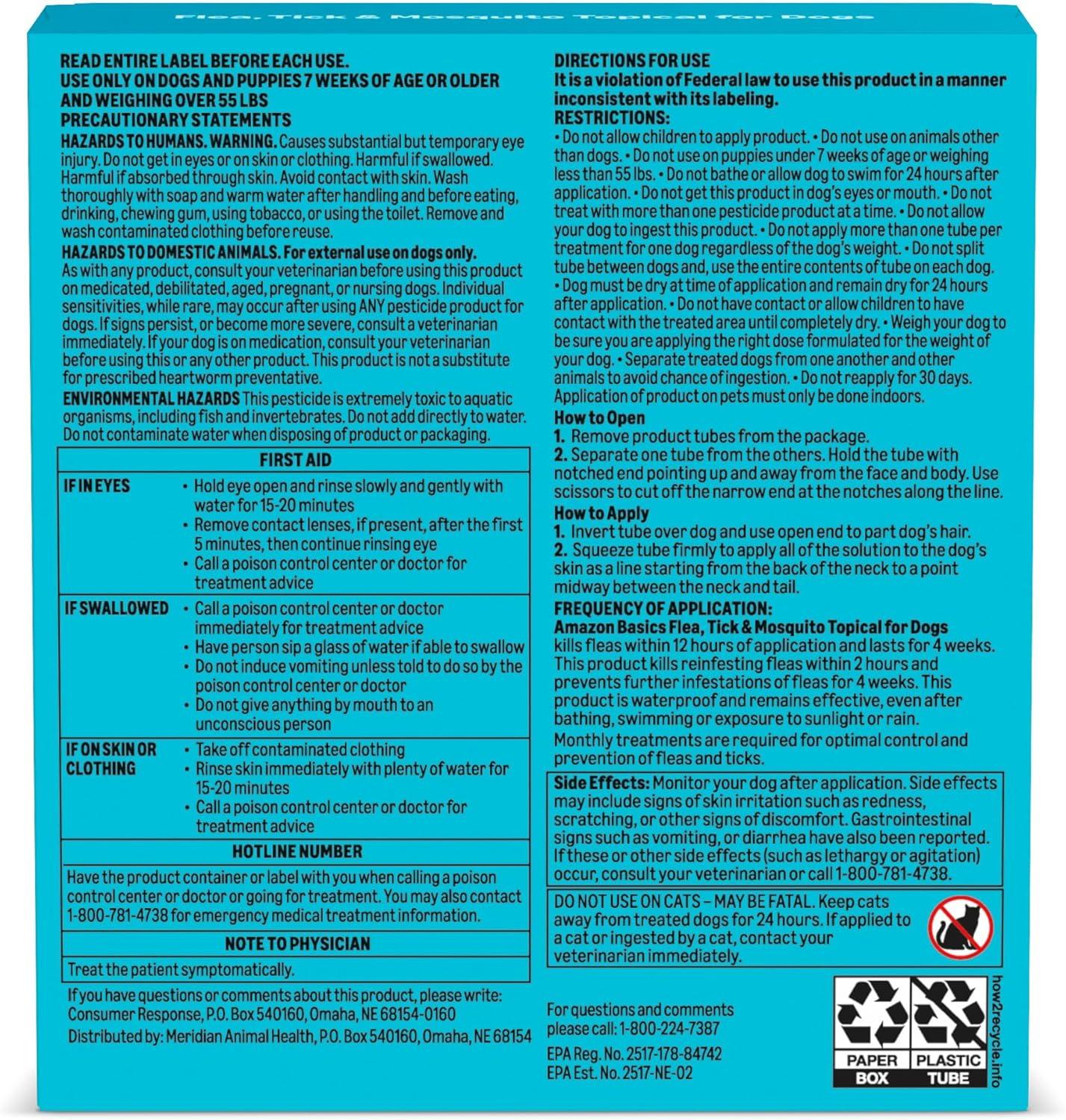 Amazon Basics Flea, Tick & Mosquito Topical Treatment for X-Large Dogs (over 55 pounds), 6 Count (Previously Solimo)(6 Count)
