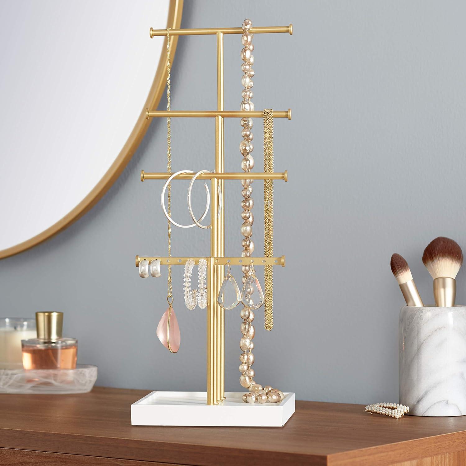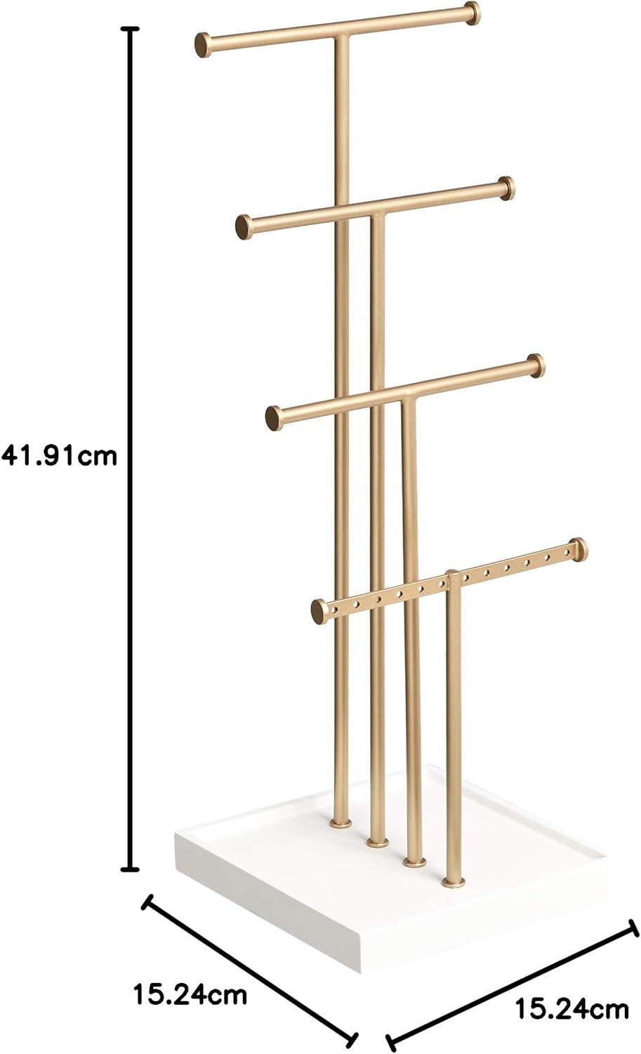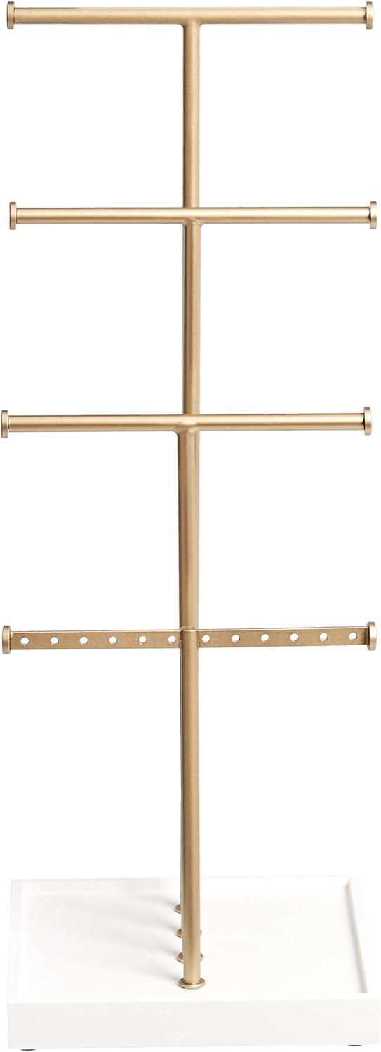 Amazon Basics Four-Tier Jewelry Tree Stand – White/Brass