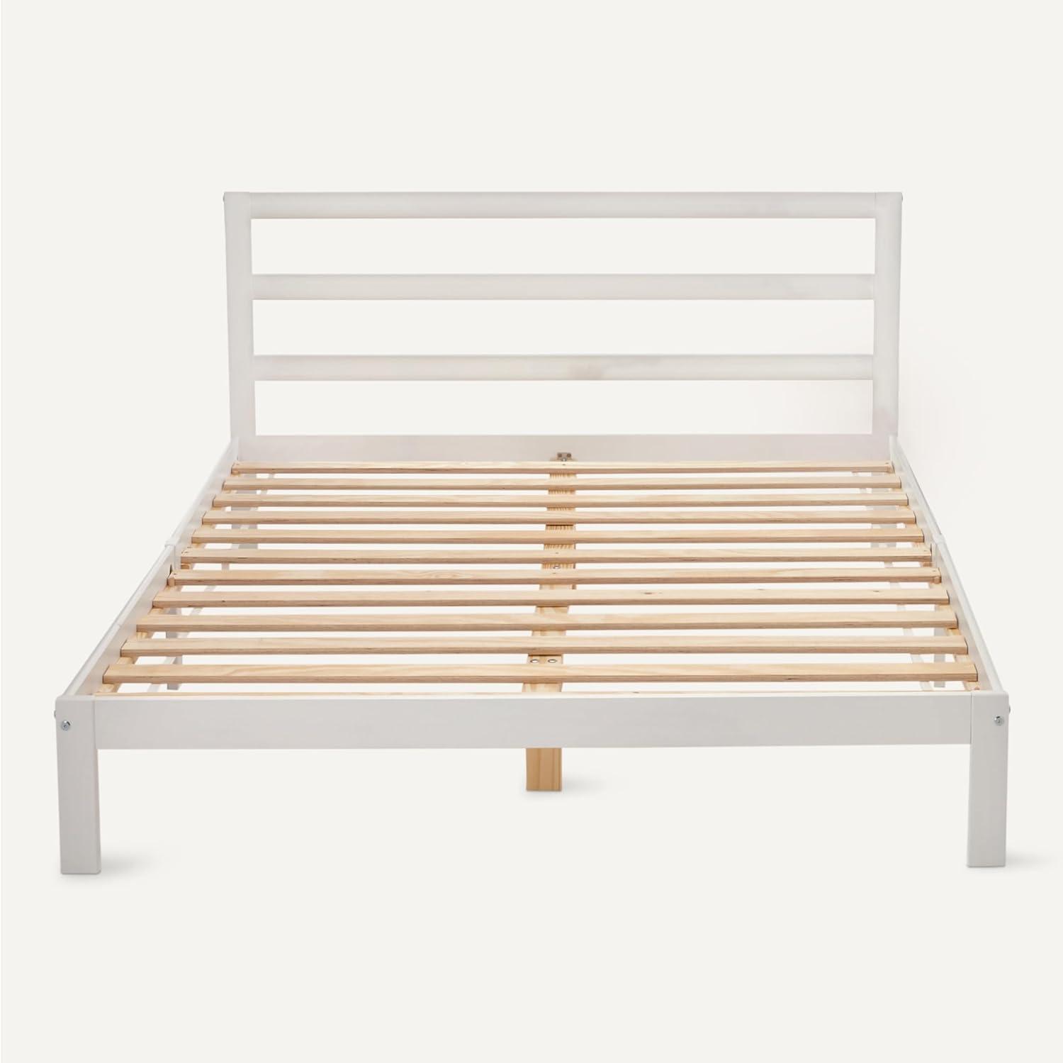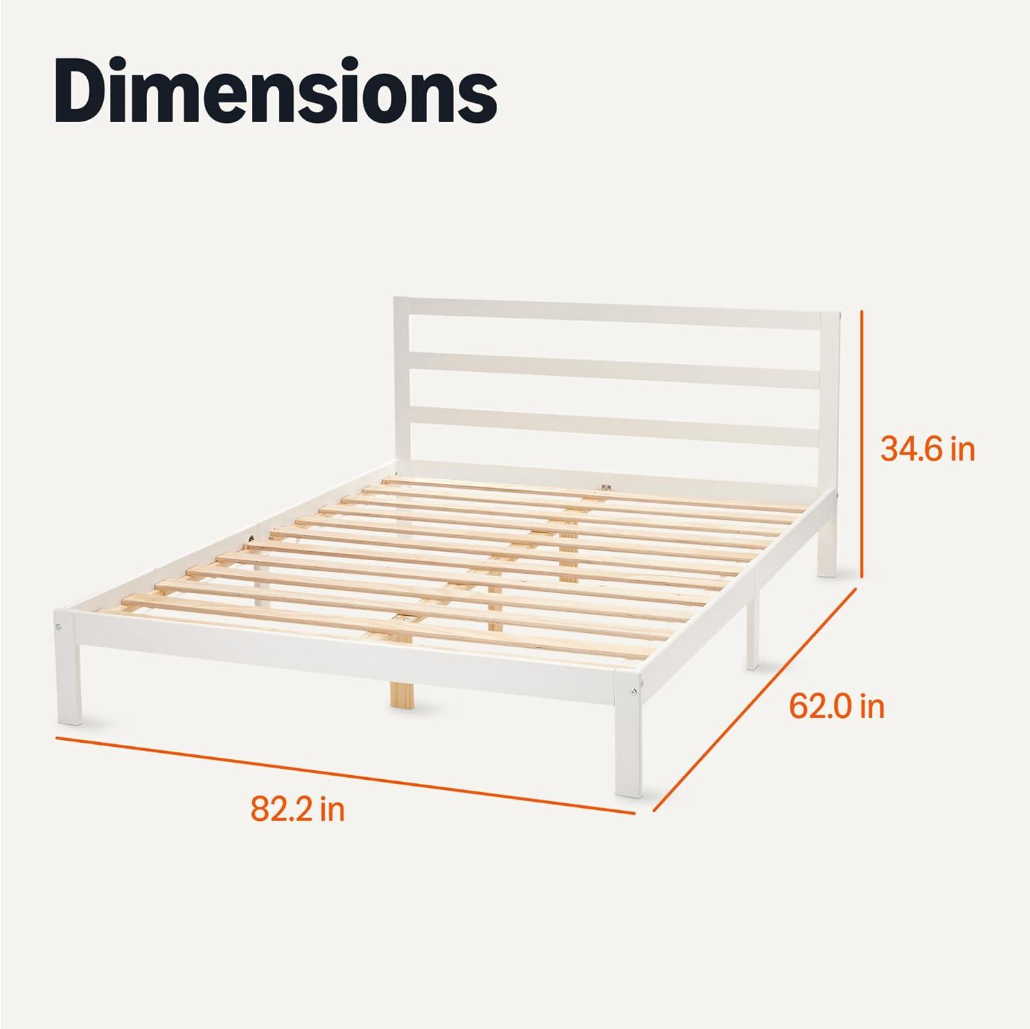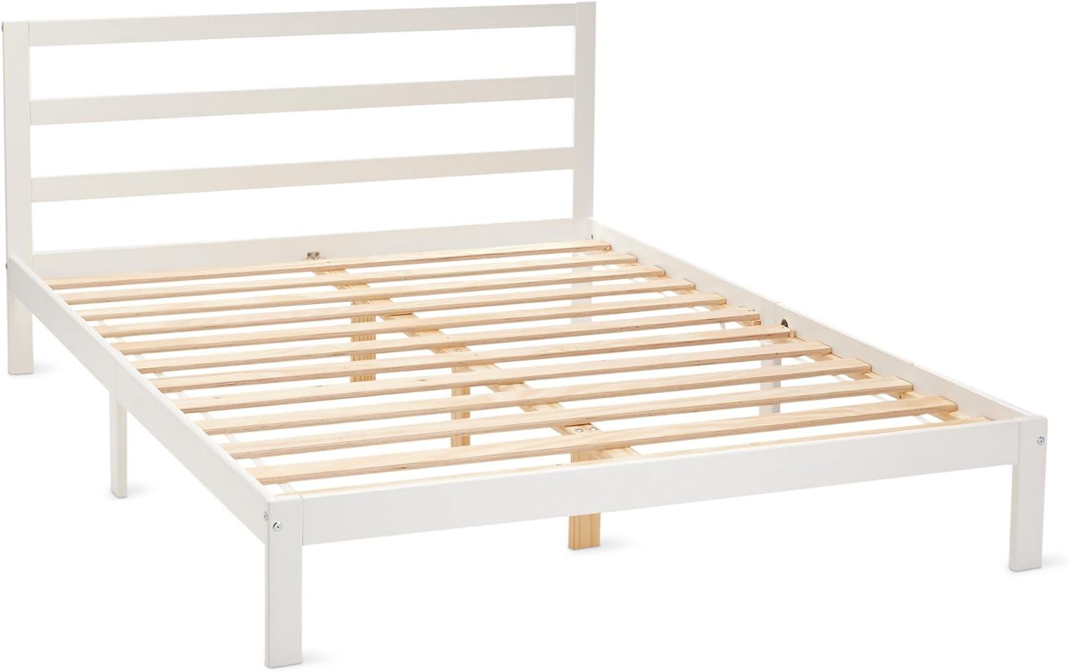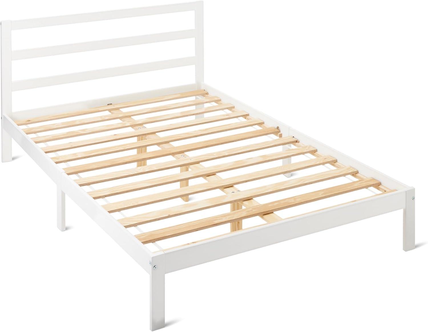 Amazon Basics Full Bed Frame with Headboard, Solid Pine Wood with Bed Slats, Full, White(White)