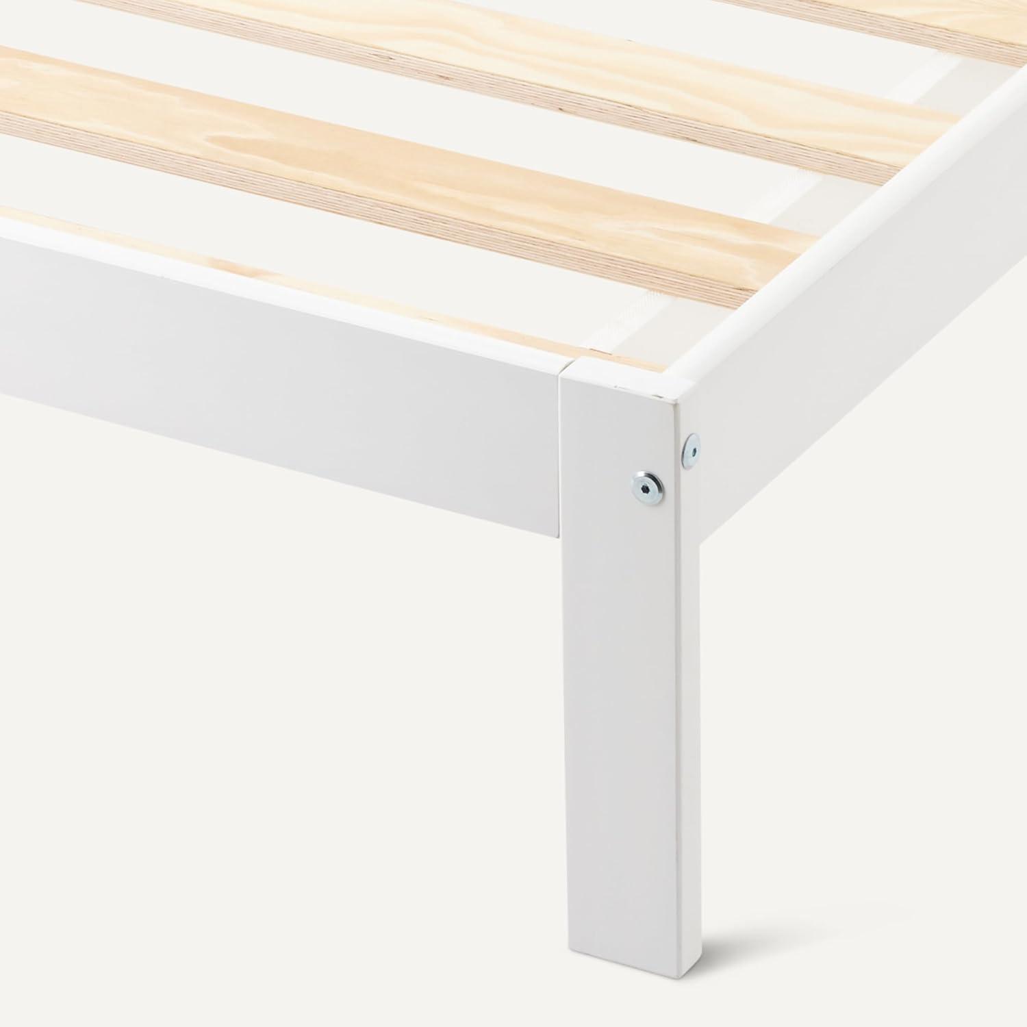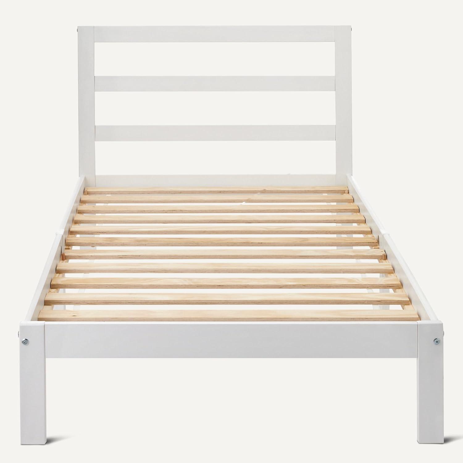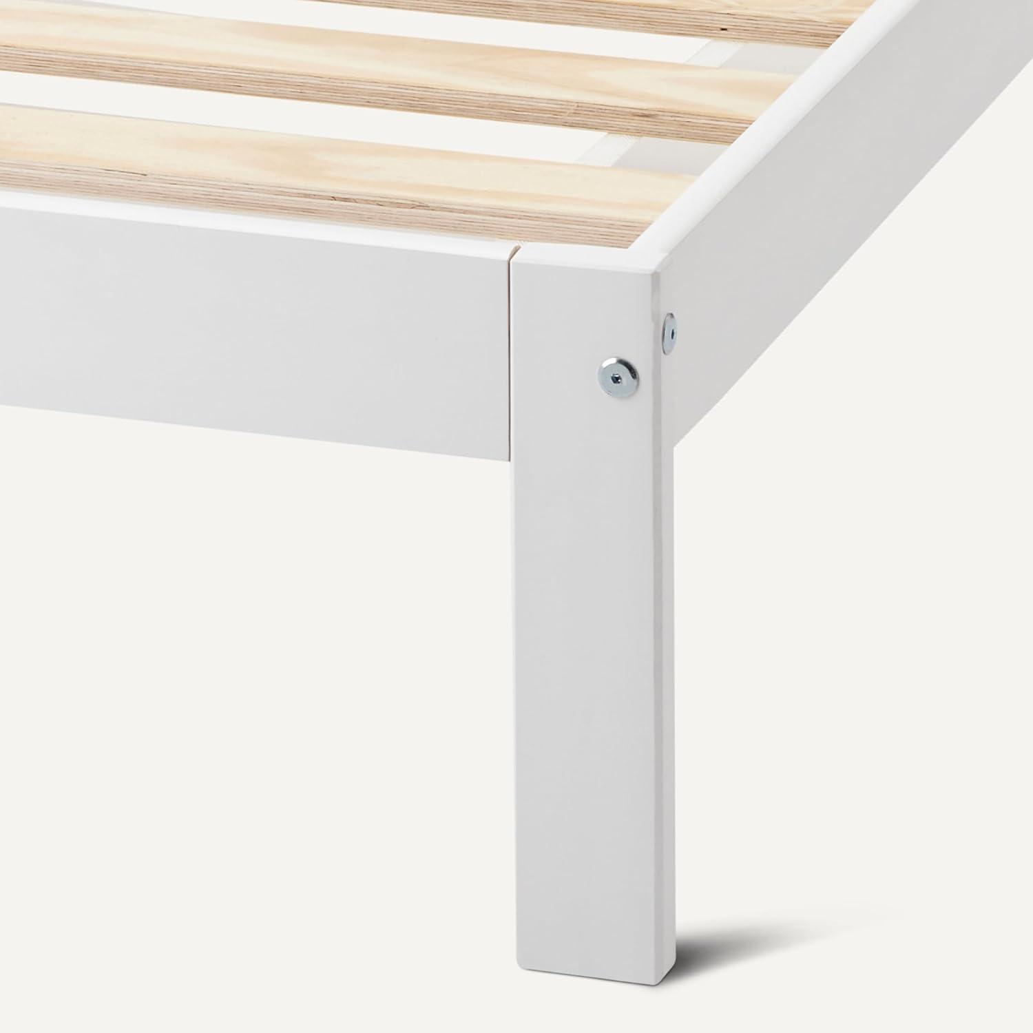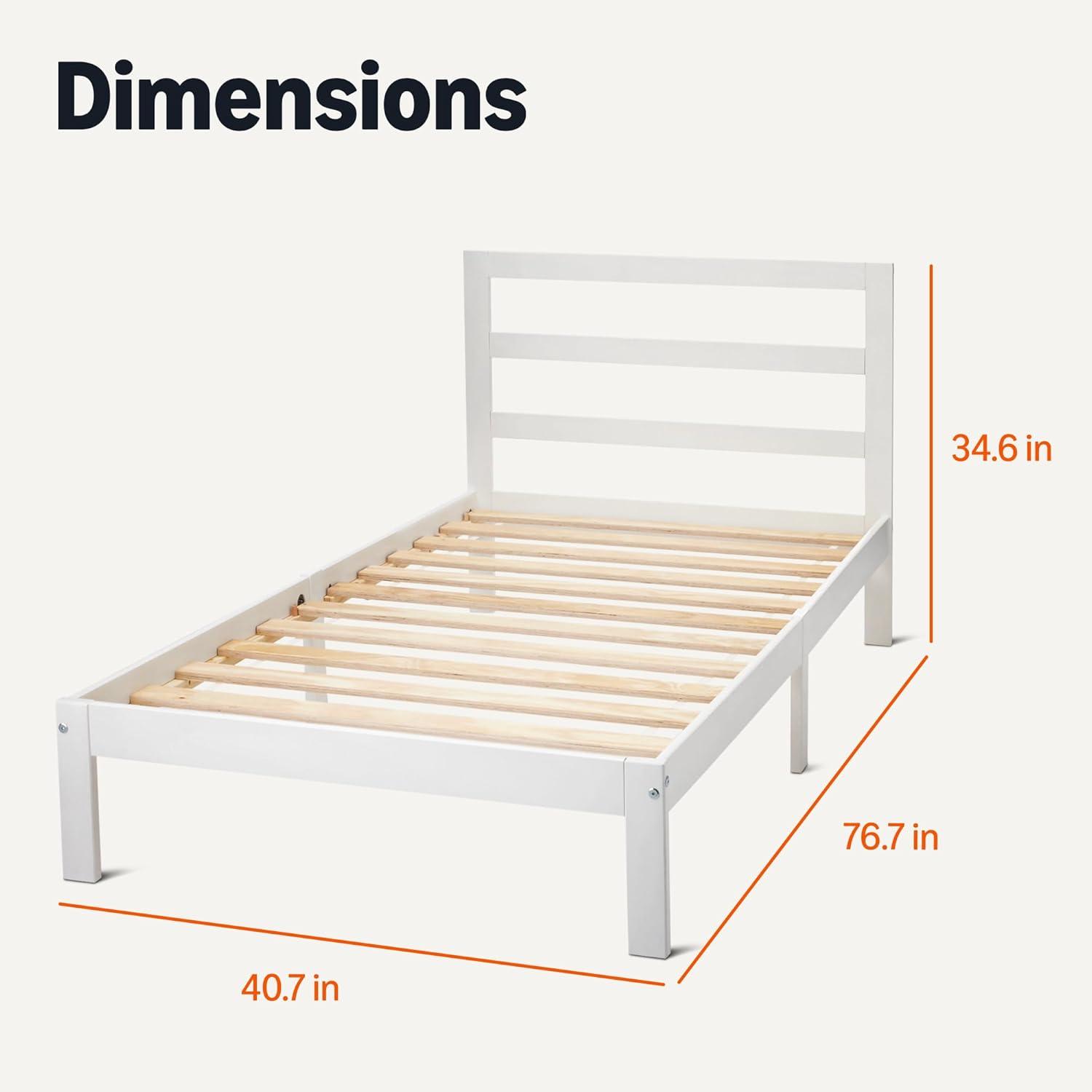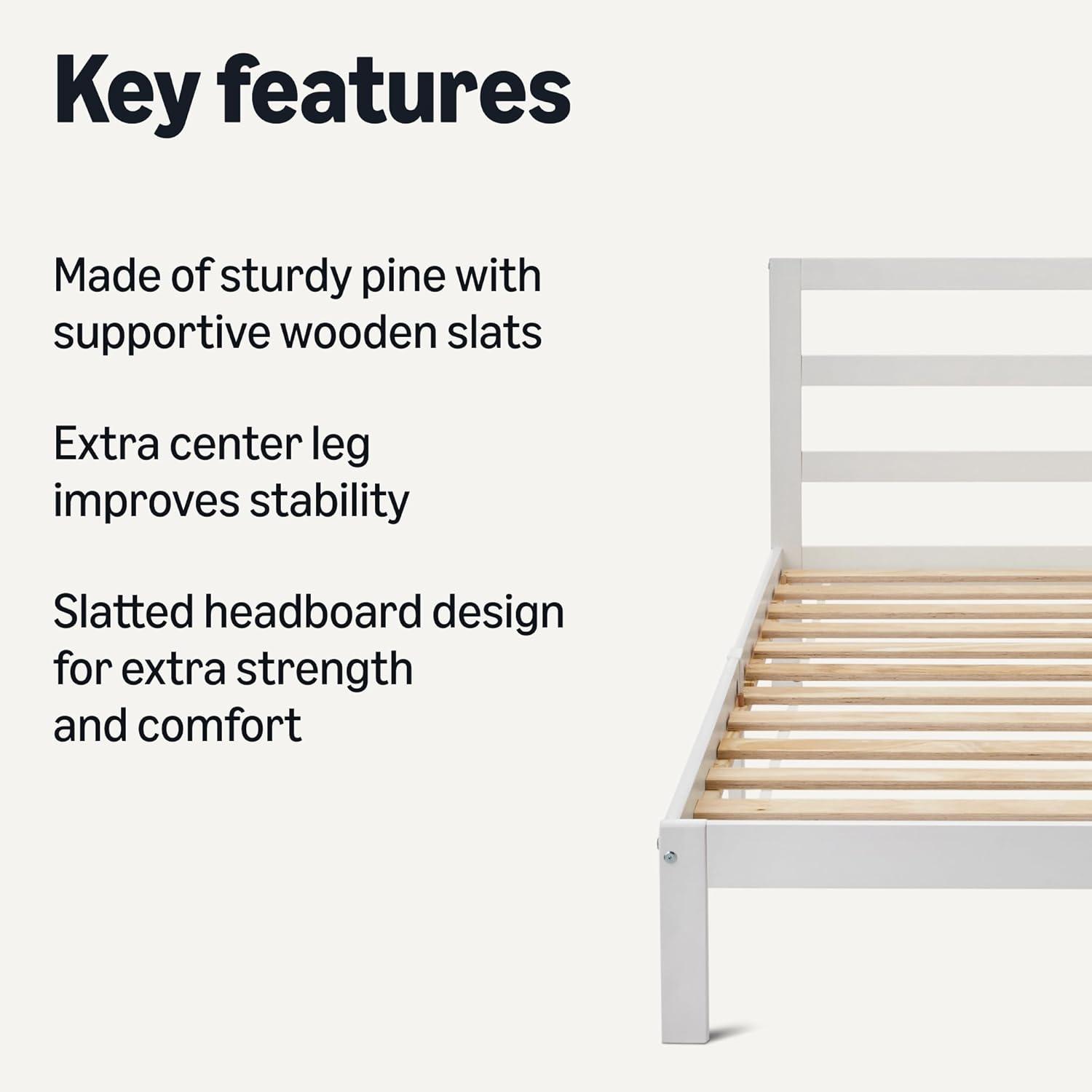 Amazon Basics Full Bed Frame with Headboard, Solid Pine Wood with Bed Slats, Full, White(White)