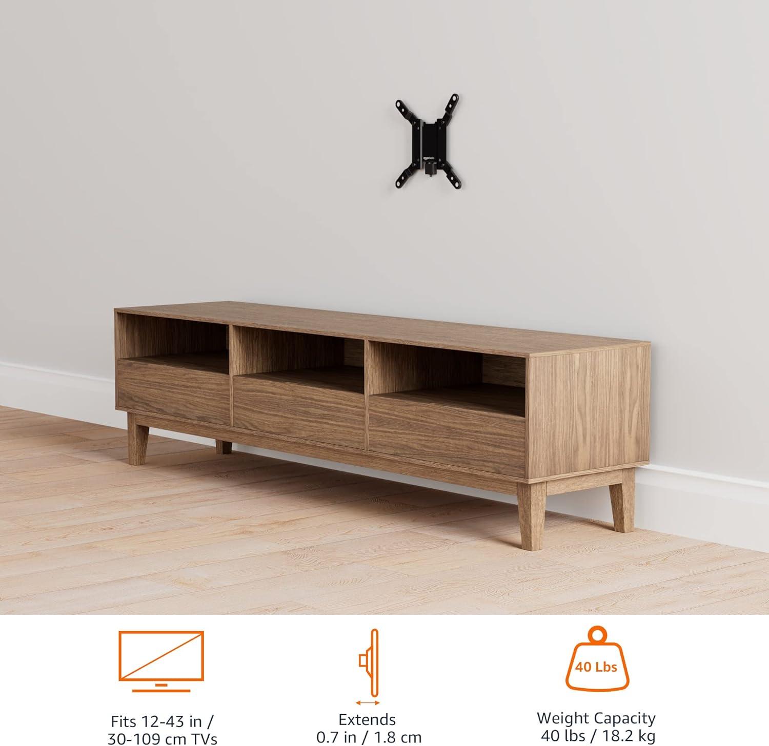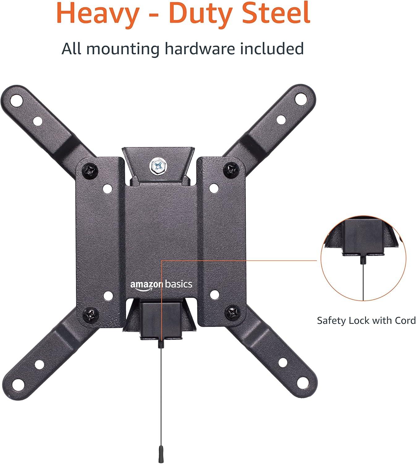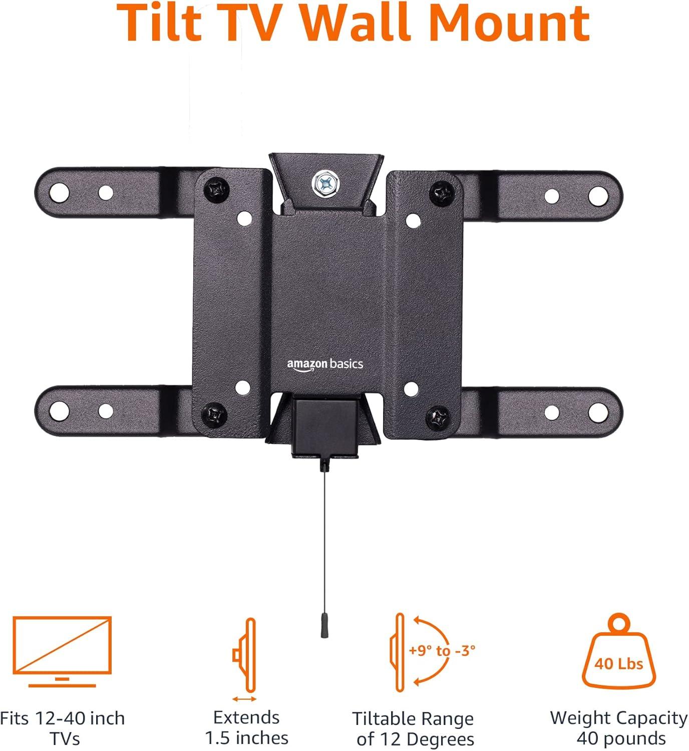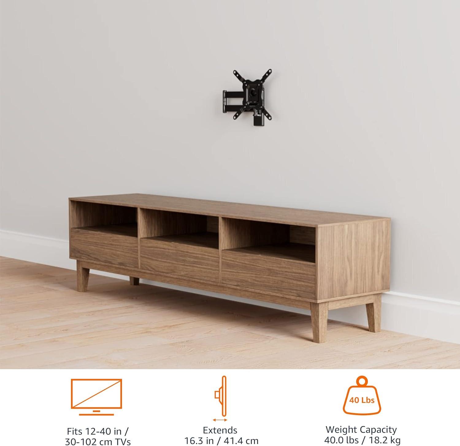 Amazon Basics Full Motion Articulating TV Monitor Wall Mount for 26″ to 55″ TVs and Flat Panels up to 80 Lbs, Black(12″ to 40″)