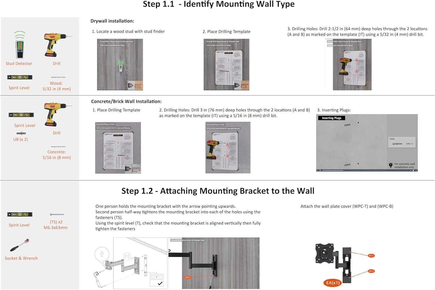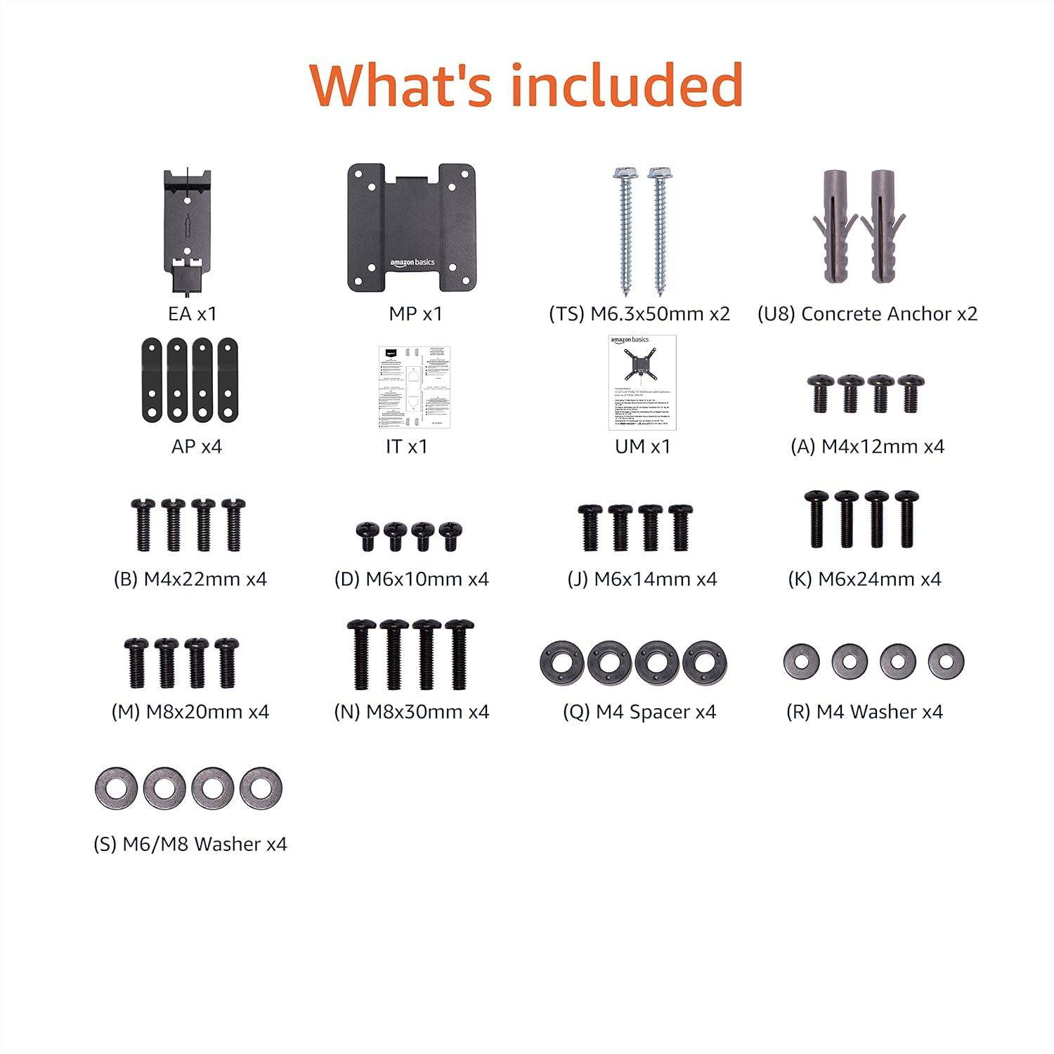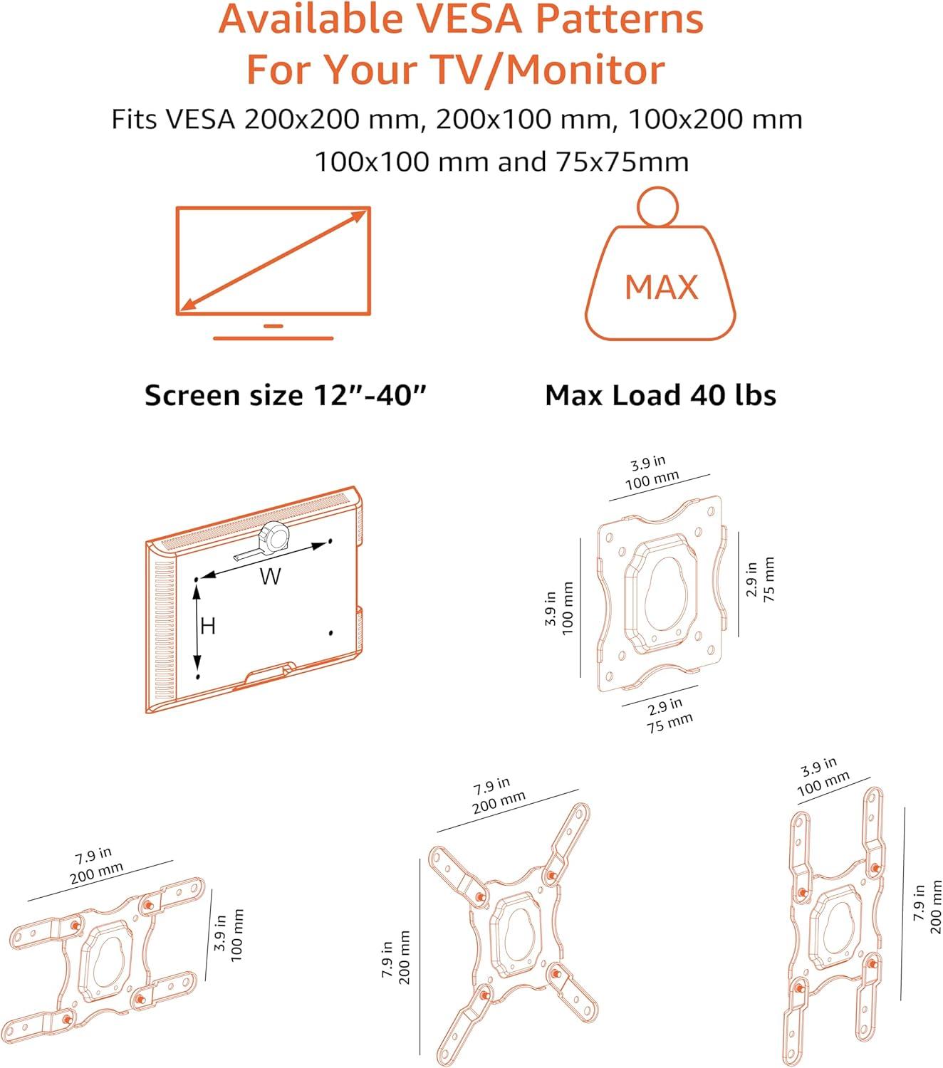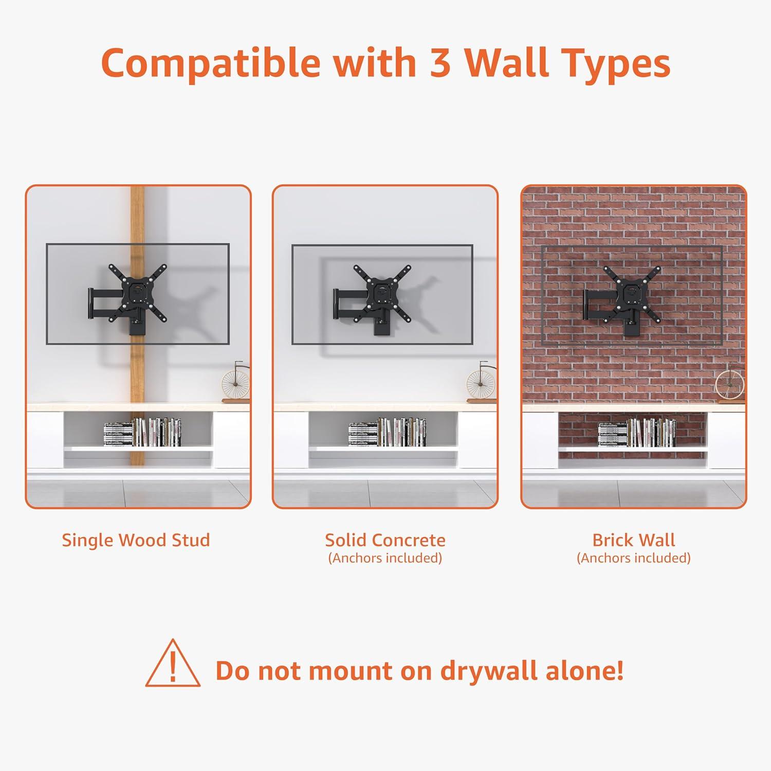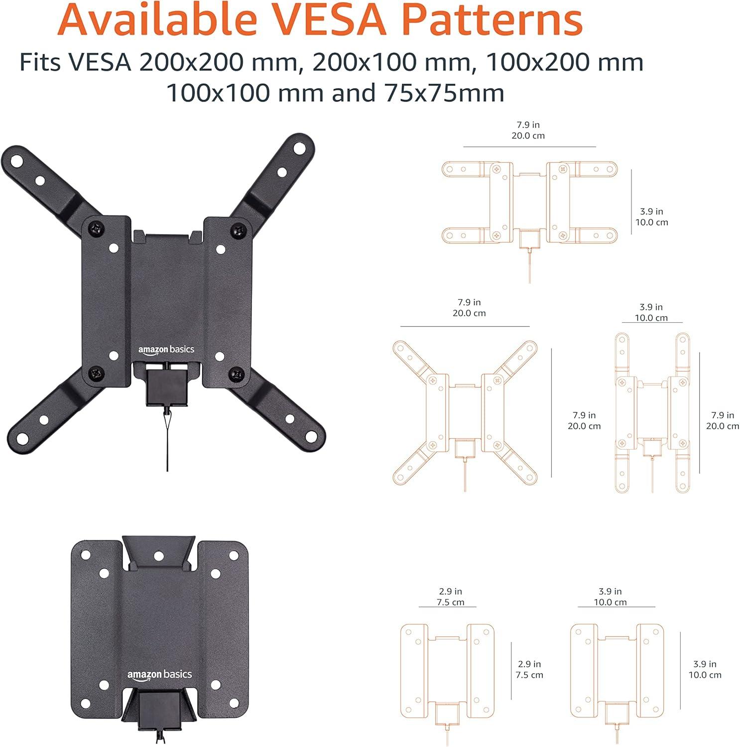 Amazon Basics Full Motion Articulating TV Monitor Wall Mount for 26″ to 55″ TVs and Flat Panels up to 80 Lbs, Black(12″ to 40″)