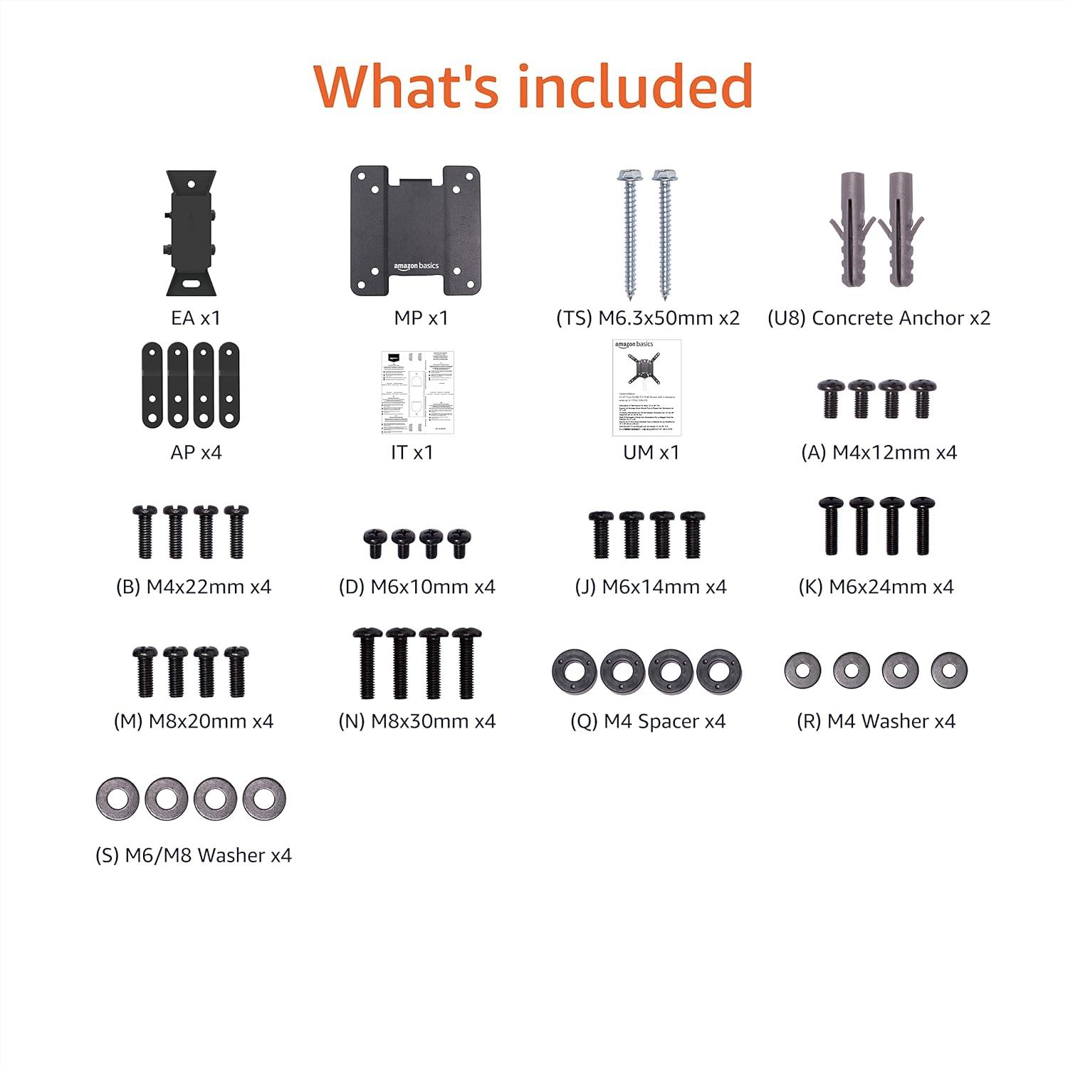 Amazon Basics Full Motion Articulating TV Monitor Wall Mount for 26″ to 55″ TVs and Flat Panels up to 80 Lbs, Black(26″ to 55″)