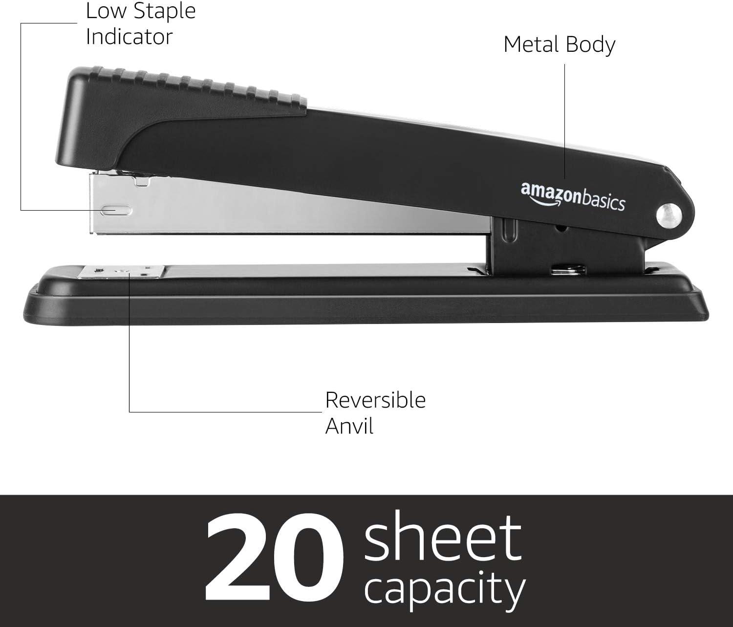 Full strip desktop stapler with 20 sheet stapling capacity; fit for 1/4 inch standard staples, 24/6 or 26/6 staples