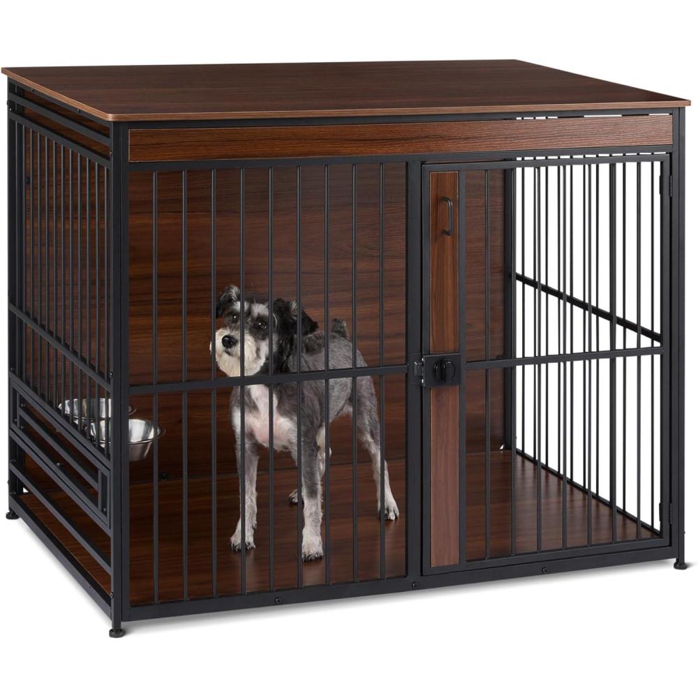 This furniture-style pet crate doubles as an elegant side table/end table, featuring a spacious top surface perfect for displaying decor, lamps, photos, or everyday items while providing a cozy space for your pet