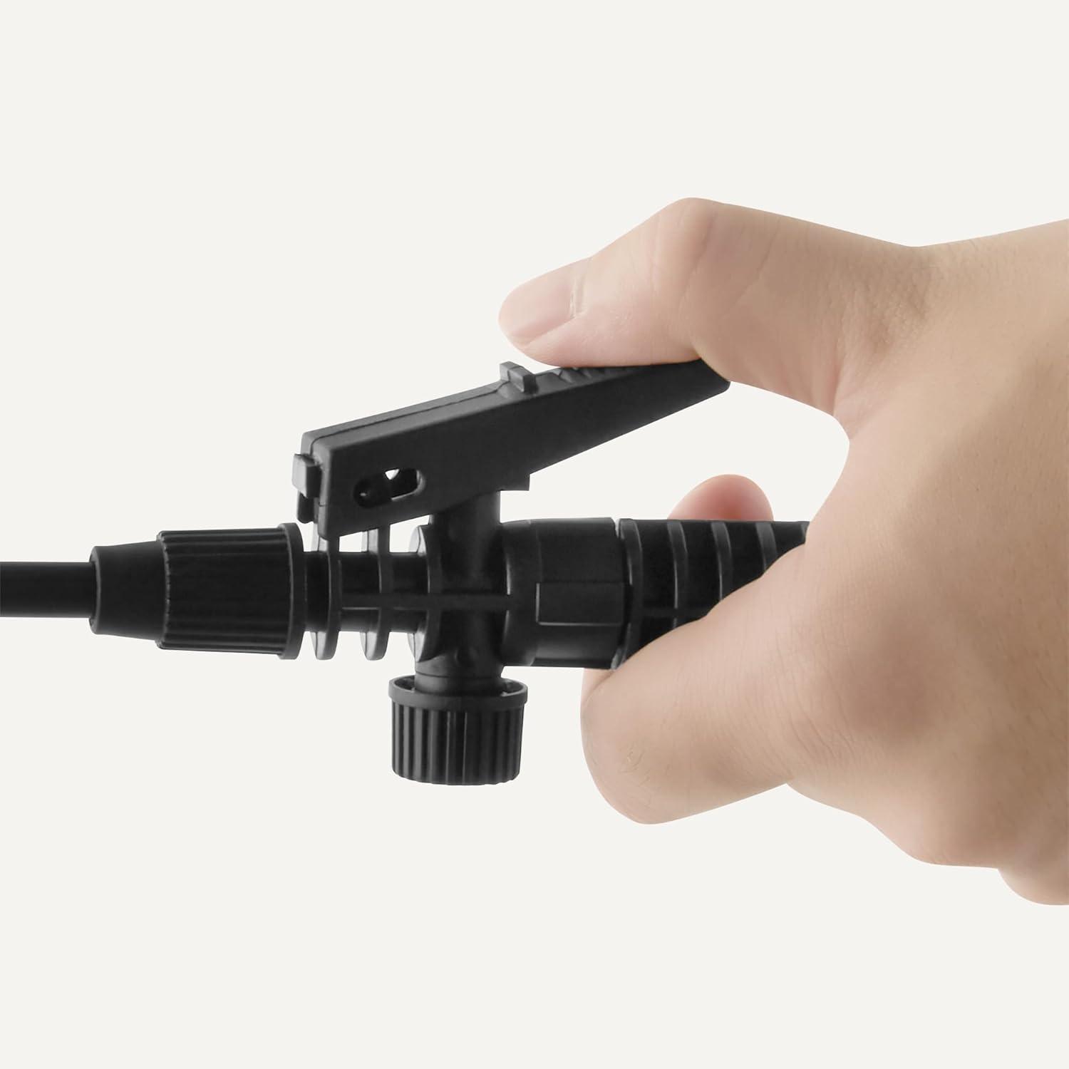 Ergonomic thumb trigger with continuous “on” option; adjustable twist nozzle for spraying a narrow stream or wide shower