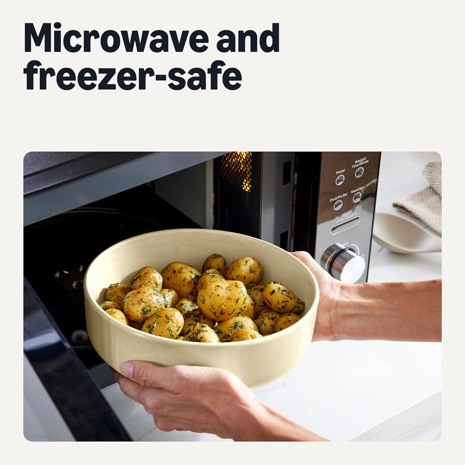 GLAZED STONEWARE: Made of stoneware with a gloss glaze finish; microwave-safe, freezer-safe, and stain-resistant