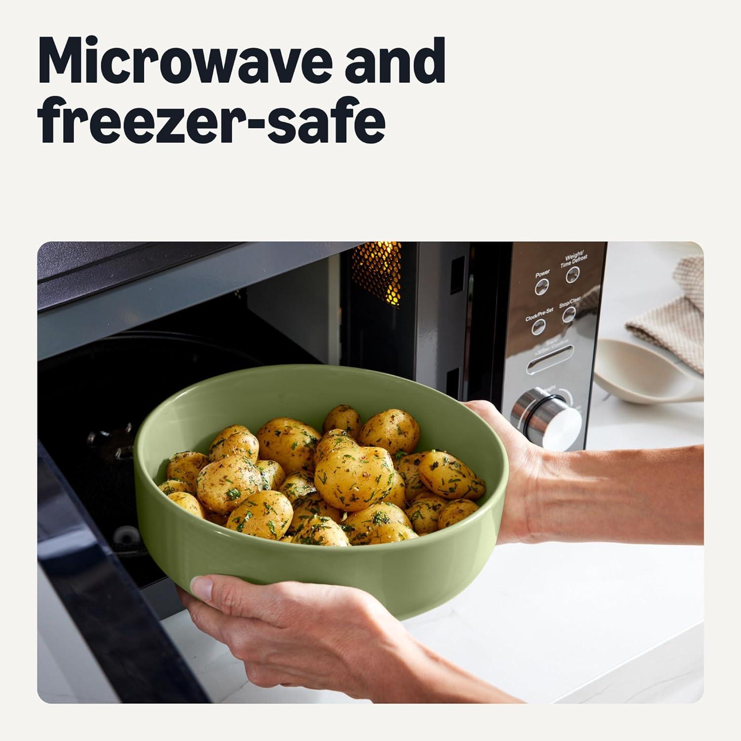 GLAZED STONEWARE: Made of stoneware with a gloss glaze finish; microwave-safe, freezer-safe, and stain-resistant