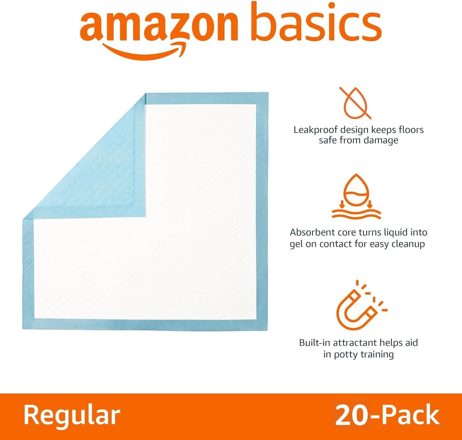 Amazon Basics Heavy Duty, Absorbent Dog and Puppy Pee Pads with 5-Layer Leak-Proof Design and Quick-Dry Surface for Potty Training, X-Large, 10 Count, Blue & White(Heavy Duty Disposable-20 Pack)