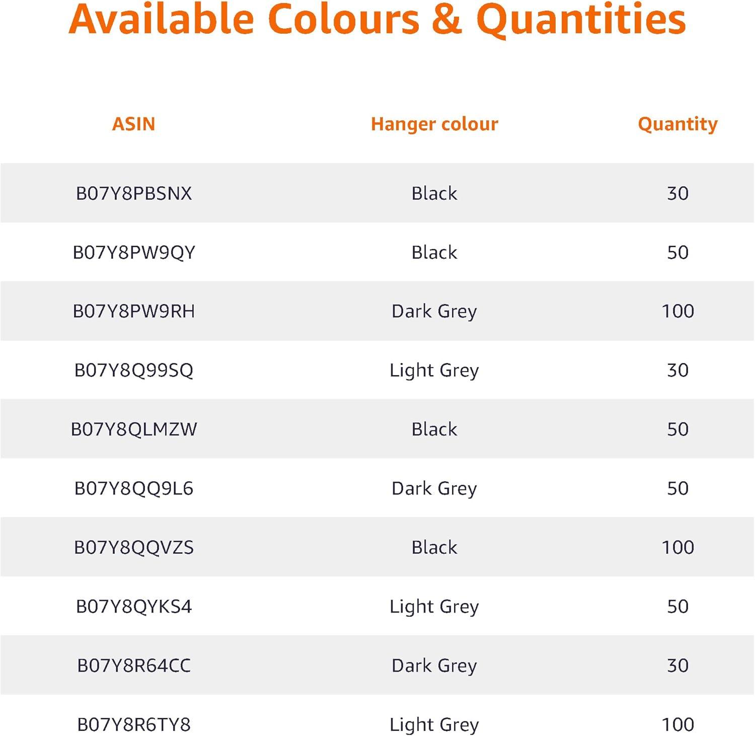 Includes a pack of 50 hangers with a soft velvet surface in Dark Grey