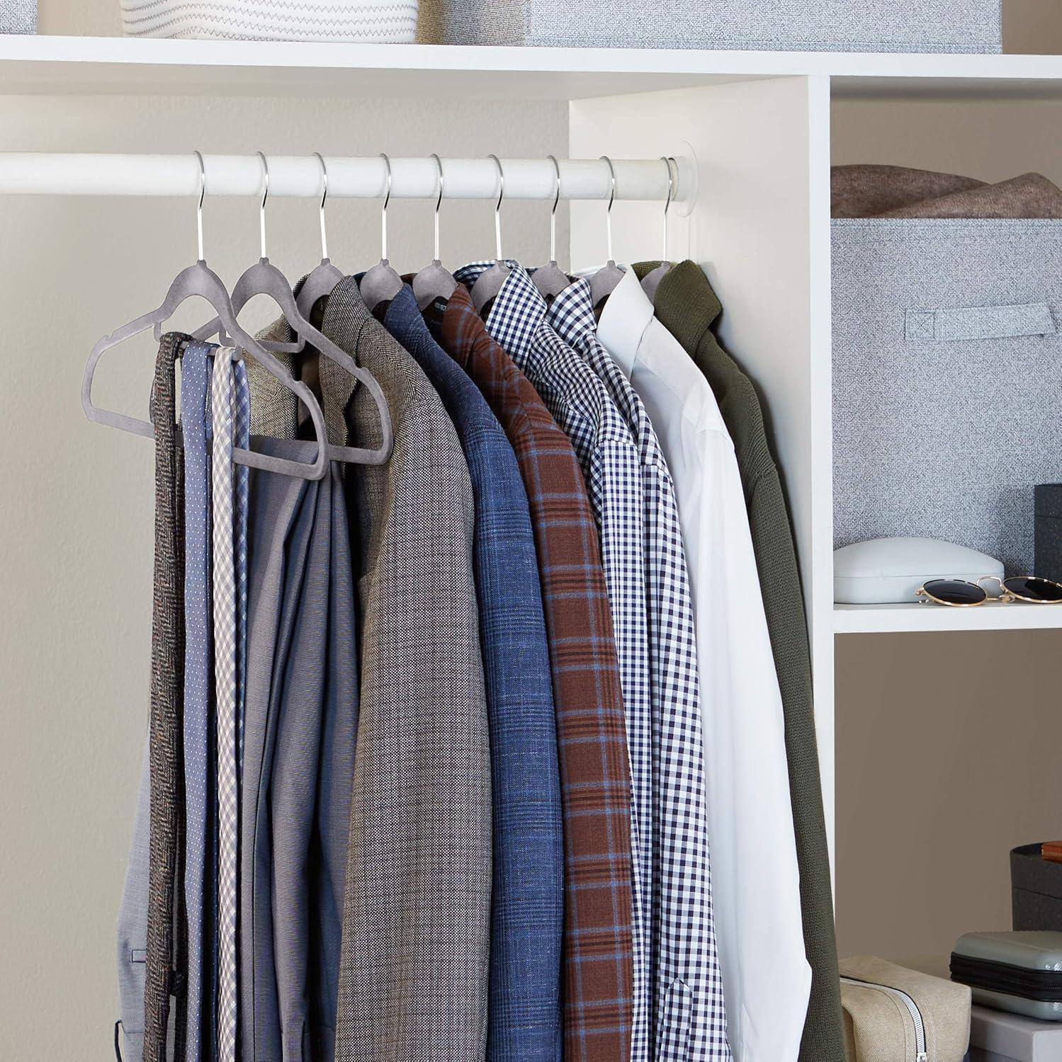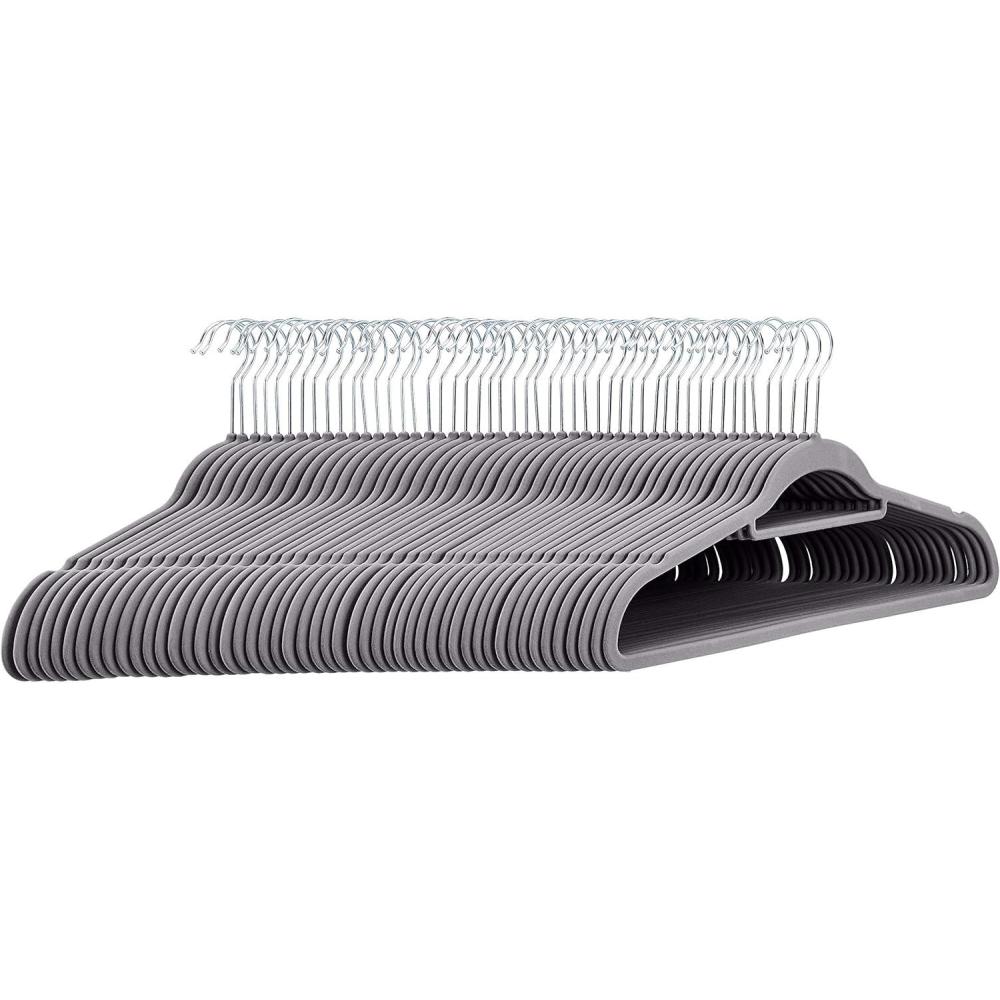 Be the first to review “Amazon Basics Heavy Duty Non-Slip Velvet Suit Hangers with Horizontal Tie Bar, 50-Pack, Dark Gray”