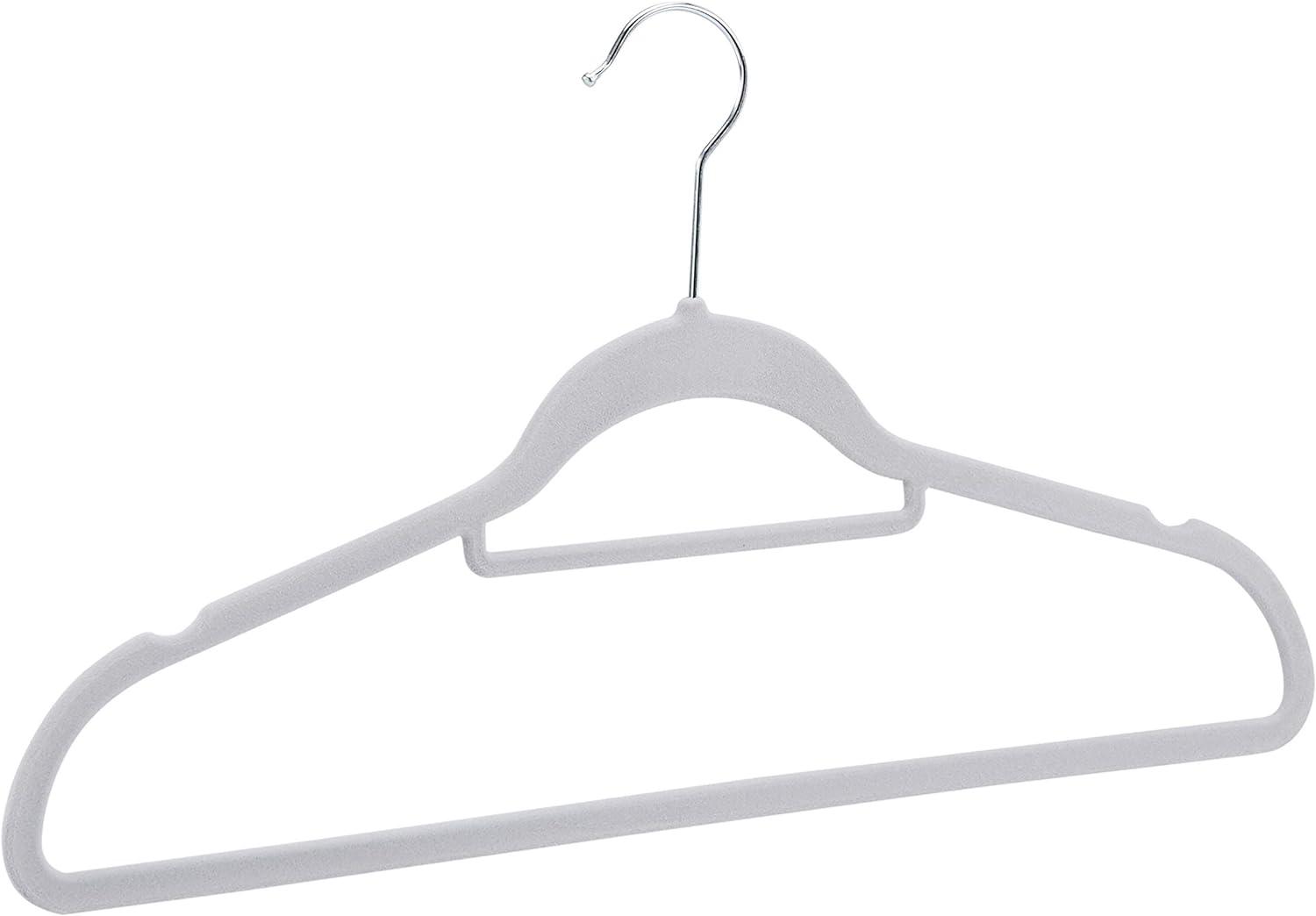 Super-slim flocked hangers maximize wardrobe space, allowing for more outfits and simpler storage