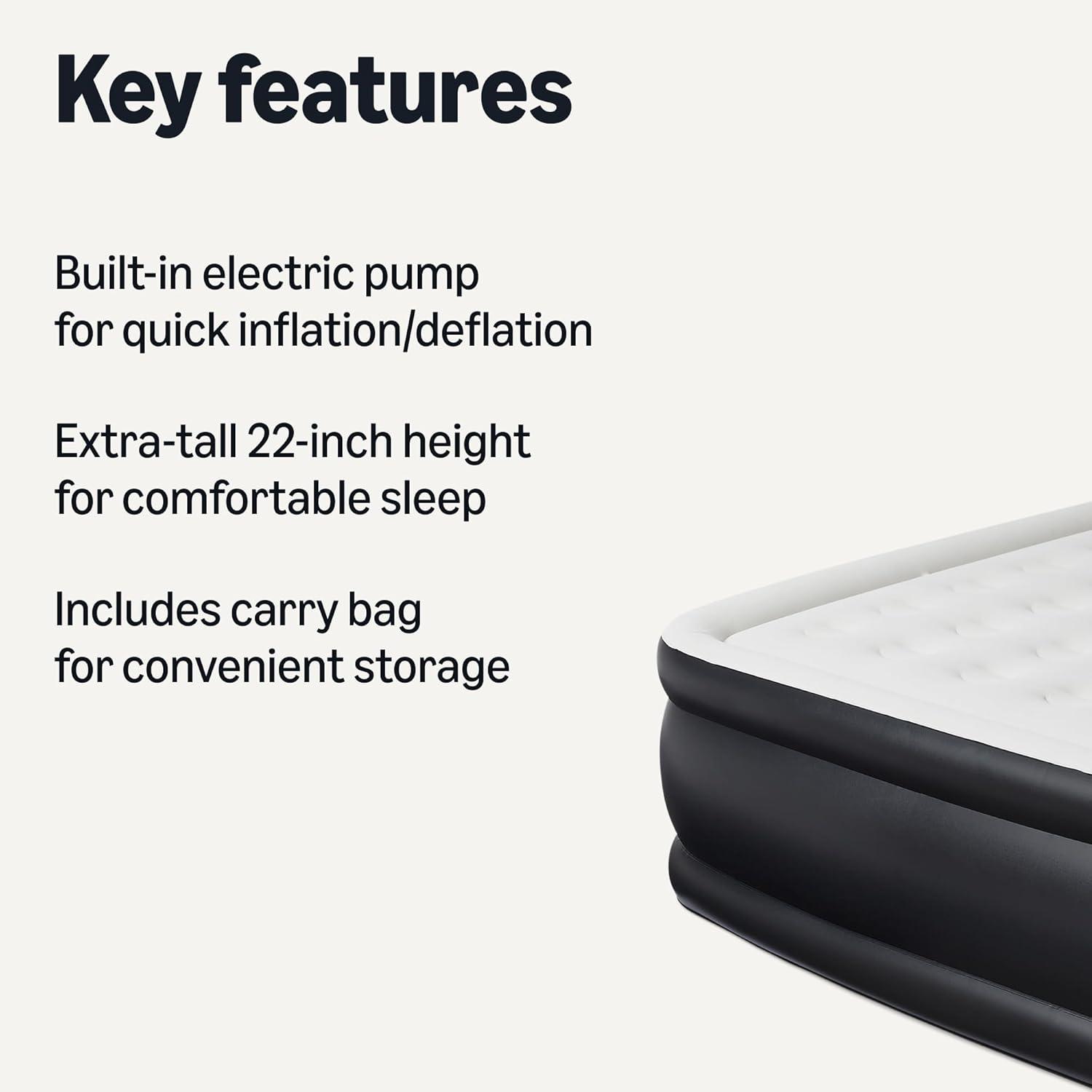 Amazon Basics Inflatable air Mattress, Queen 22in Height Blow up Mattress with Built in Pump(Queen (600 lbs) - NA Plug)