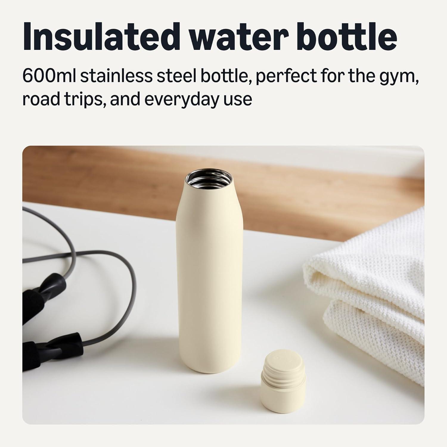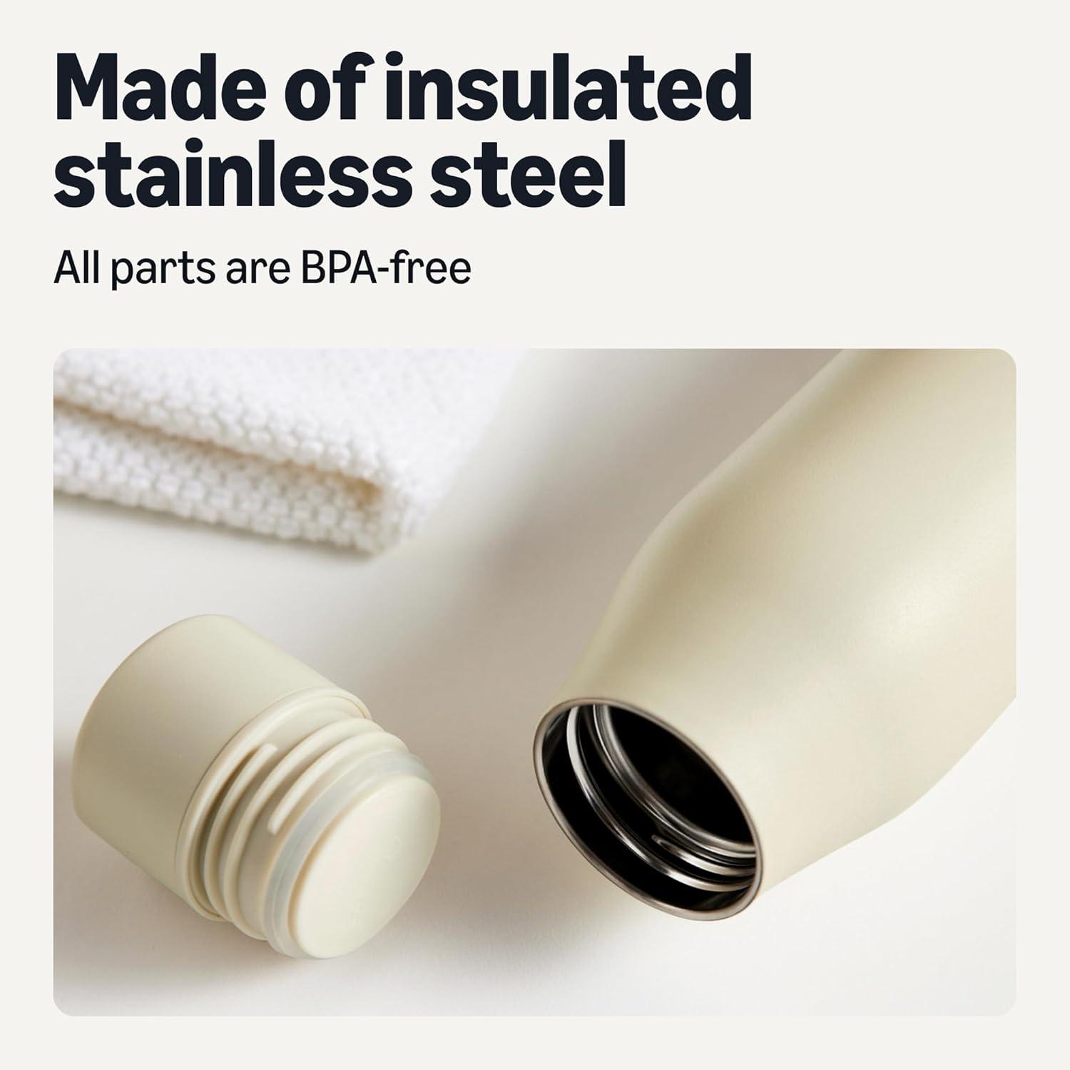 Amazon Basics Insulated Stainless Steel Water Bottle, 20 oz., BPA-Free, Linen Gray(Ivory)
