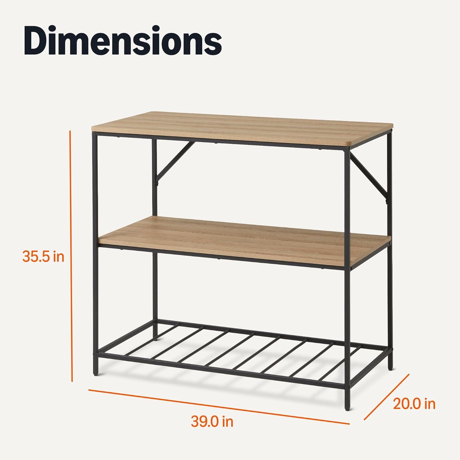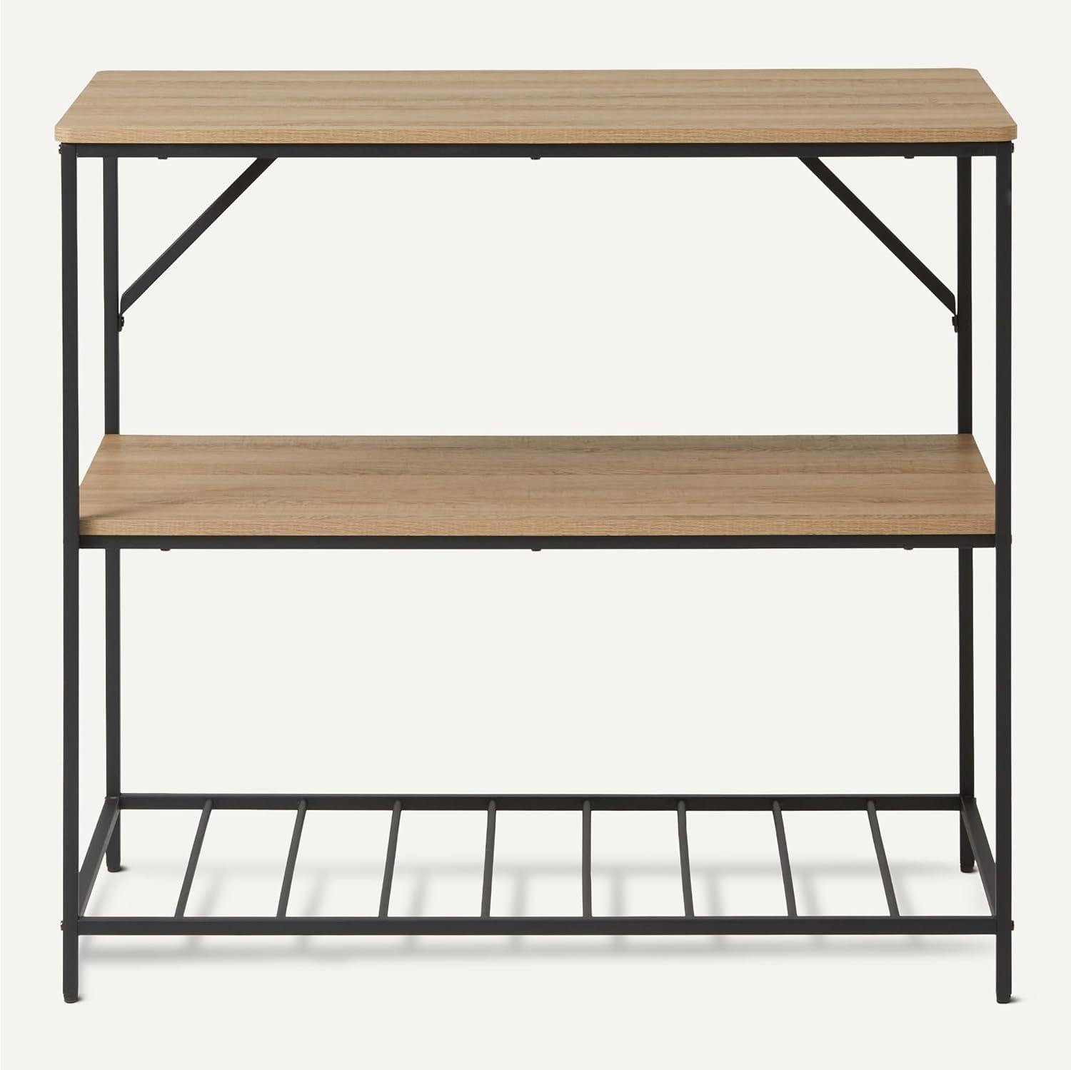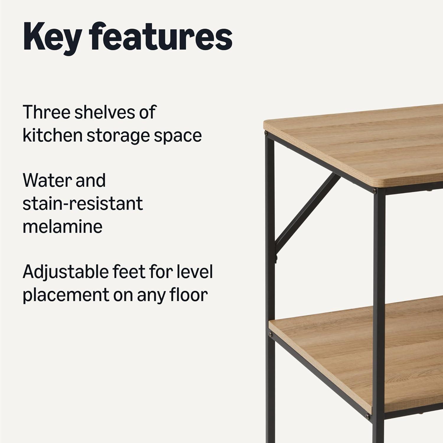 Amazon Basics Kitchen Island with 3 Storage Shelves, Black and Oak Effect