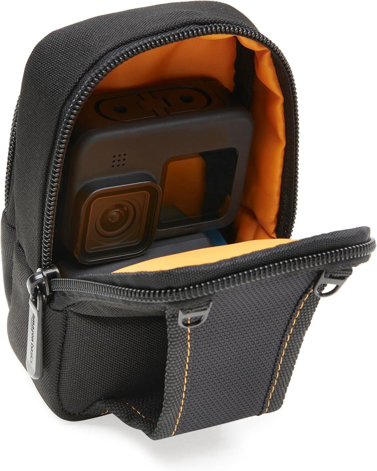 Amazon Basics Large Point and Shoot Padded Camera Case with Adjustable Shoulder Strap, Belt Loop, Interior Dimension 5.2 x 3.2 x 1 inches, Black(Large)