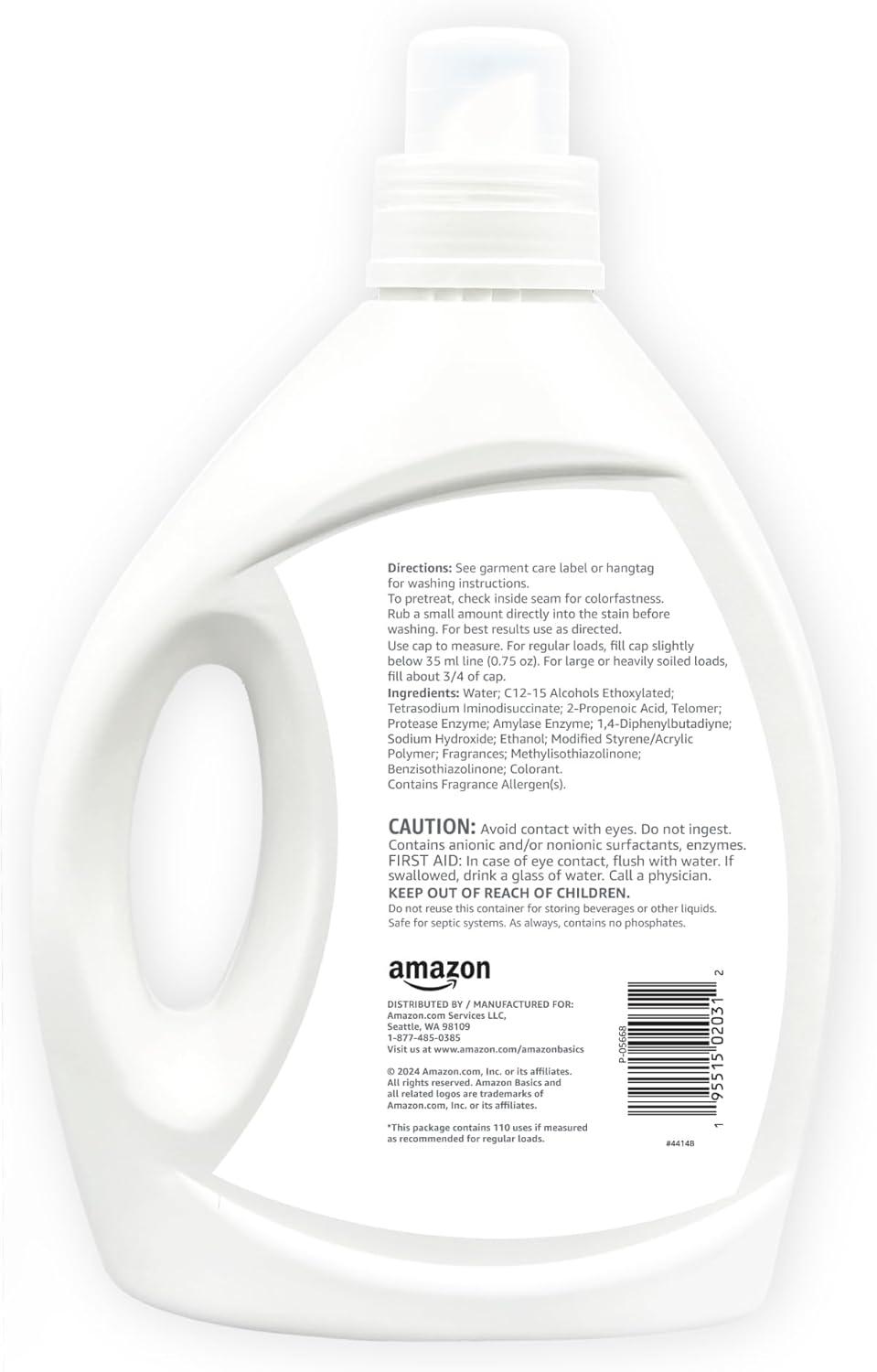 Amazon Basics Laundry Detergent Liquid, Concentrated, Fresh Scent, 110 Loads, 82.5 Fl Oz (New Packaging)(Free & Clear)