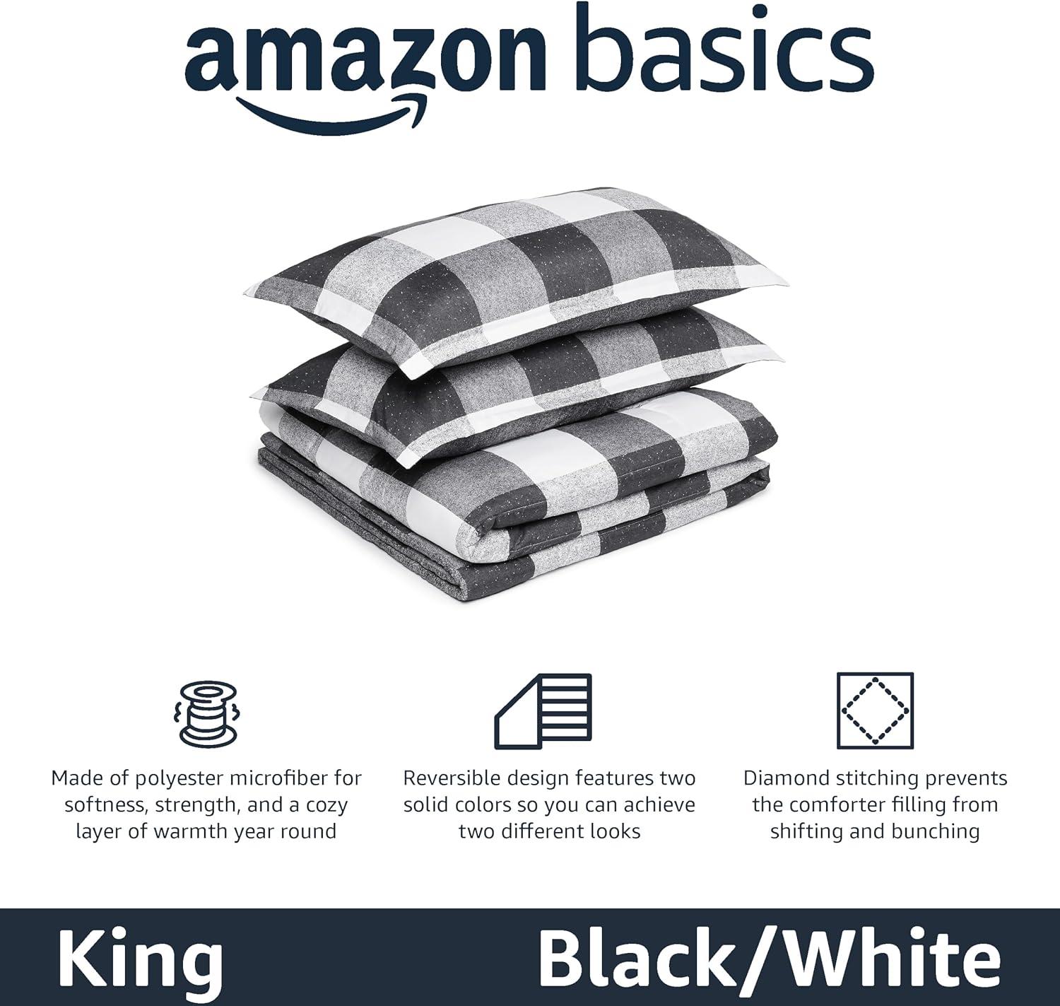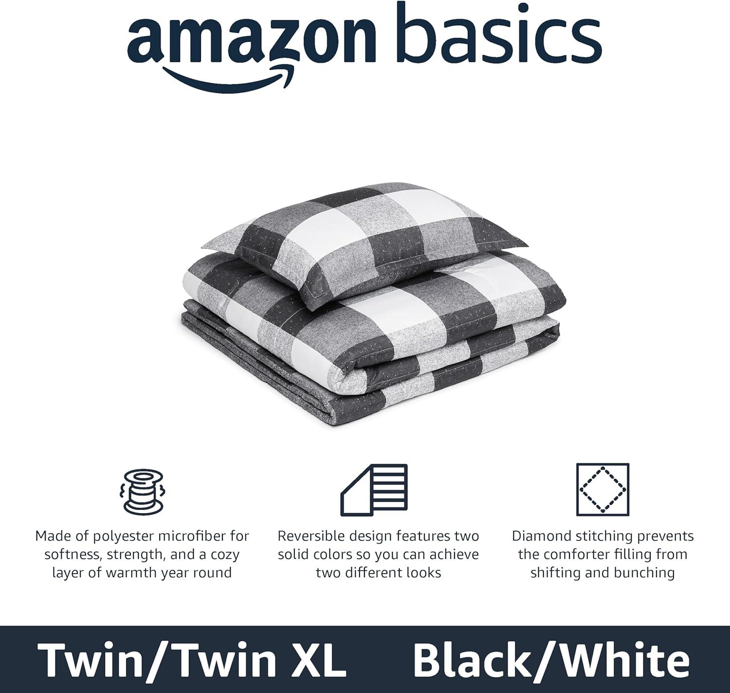 Amazon Basics Lightweight Microfiber Comforter Sets, 2-Pieces, Geometrics, Twin/Twin XL(Checkerboard Pattern Black/White)