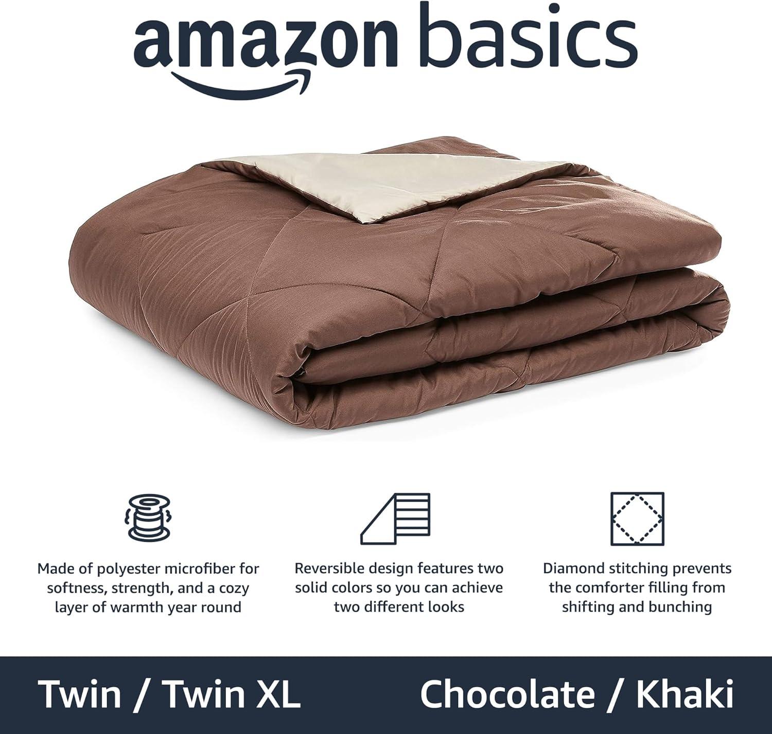Amazon Basics Lightweight Microfiber Comforter Sets, 2-Pieces, Geometrics, Twin/Twin XL(Chocolate / Khaki)
