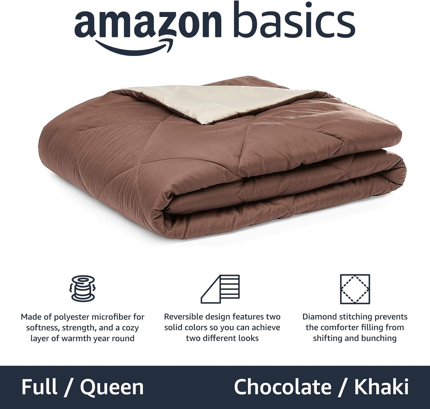 imageAmazon Basics Lightweight Microfiber Comforter Sets 2Pieces Geometrics TwinTwin XLChocolate  Khaki