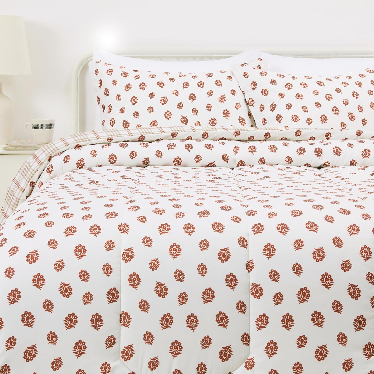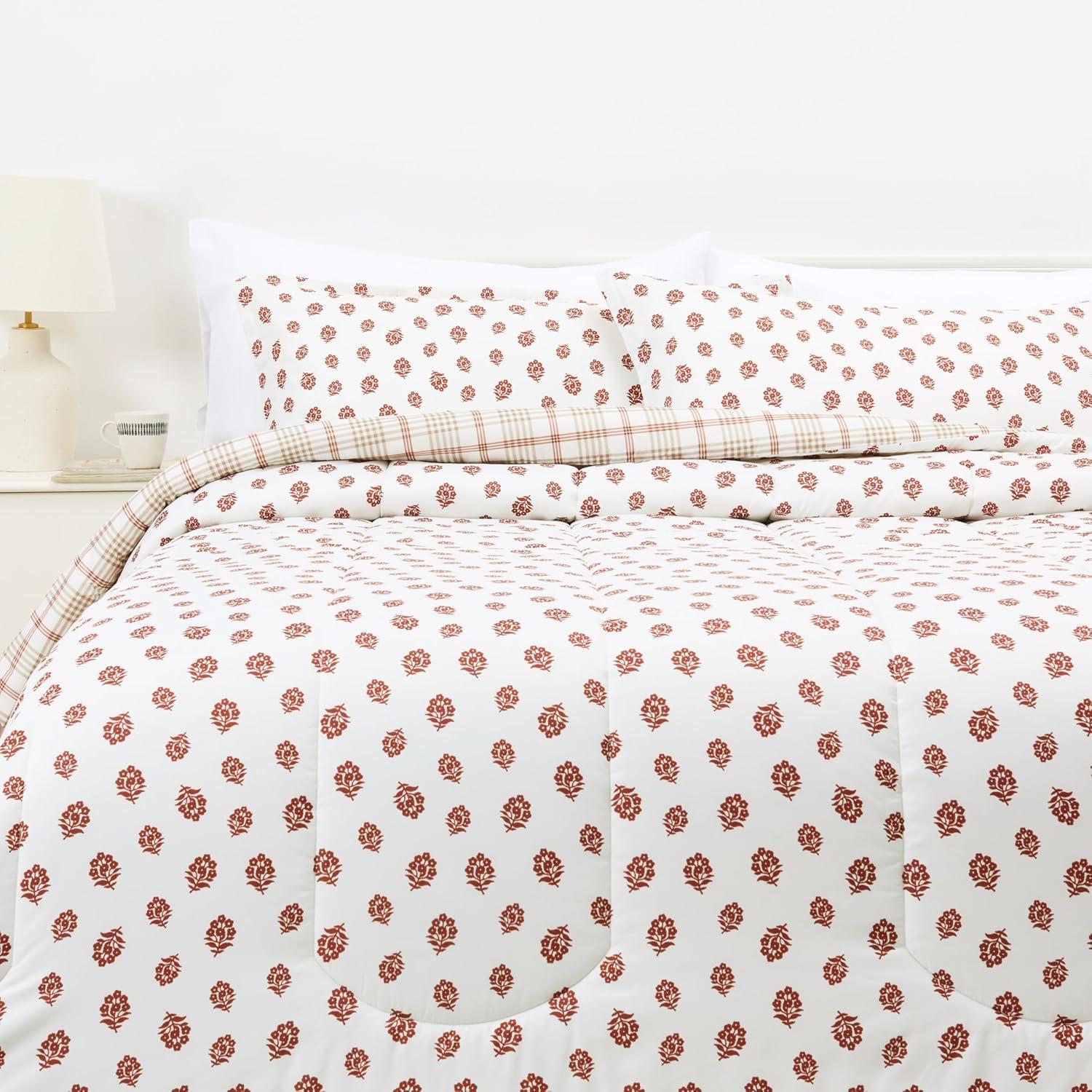 Amazon Basics Lightweight Microfiber Comforter Sets, 2-Pieces, Geometrics, Twin/Twin XL(Ornamental Red Elegance)