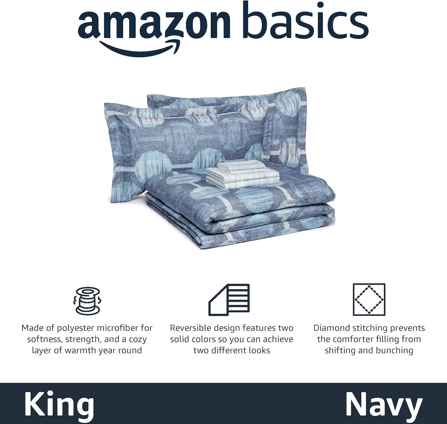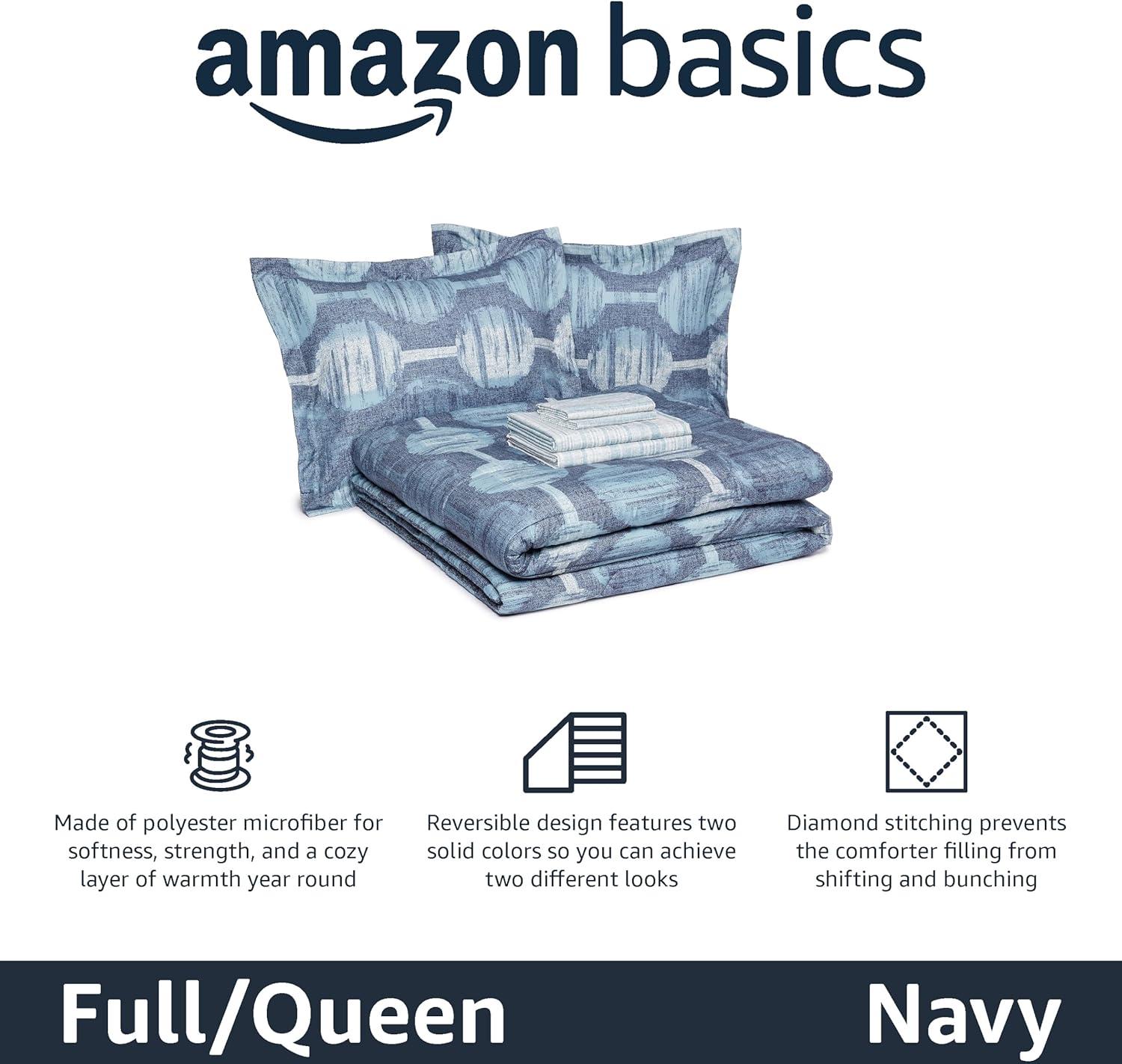 imageAmazon Basics Lightweight Microfiber Comforter Sets 7 Pieces Navy Geometrics FullQueenPixelated Orb Designstripesolid  NavyNavy Mid