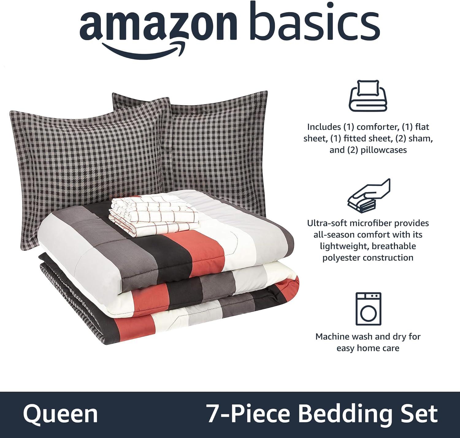 imageAmazon Basics Lightweight Microfiber Comforter Sets 7 Pieces Navy Geometrics FullQueenRed Buffalo Plaid