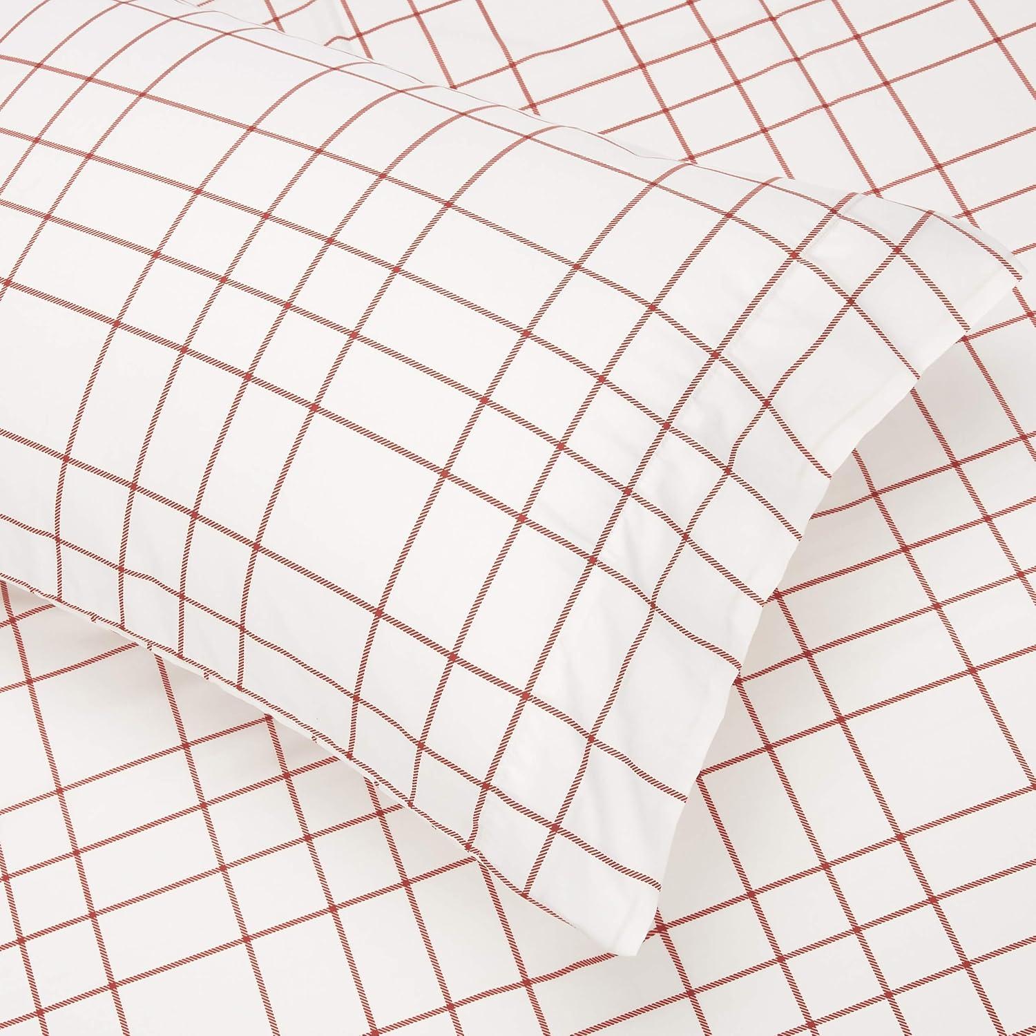 Amazon Basics Lightweight Microfiber Comforter Sets, 7 Pieces, Navy, Geometrics, Full/Queen(Red Buffalo Plaid)