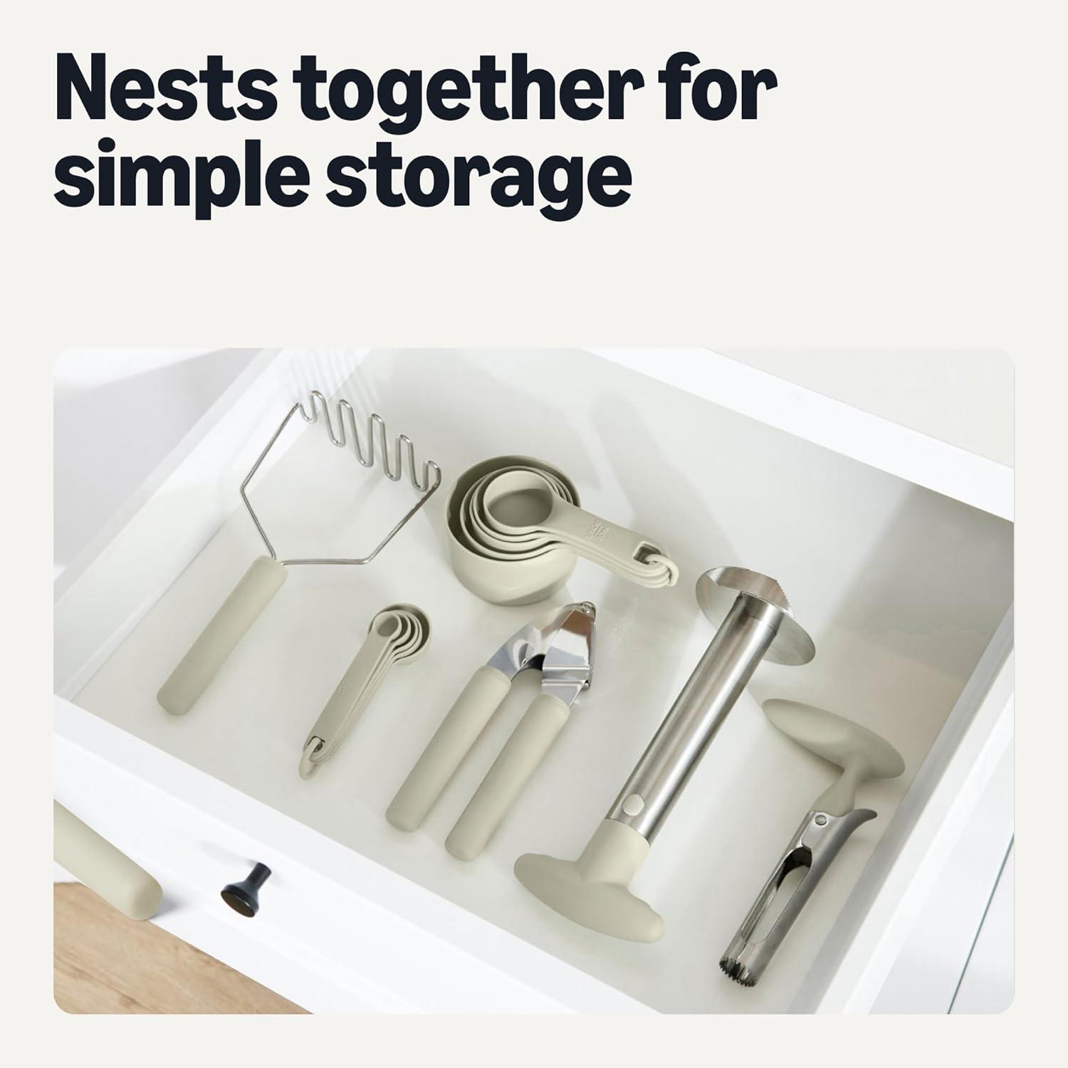 EASY STORAGE: Loop design keeps cups and spoons organized and easy to store together