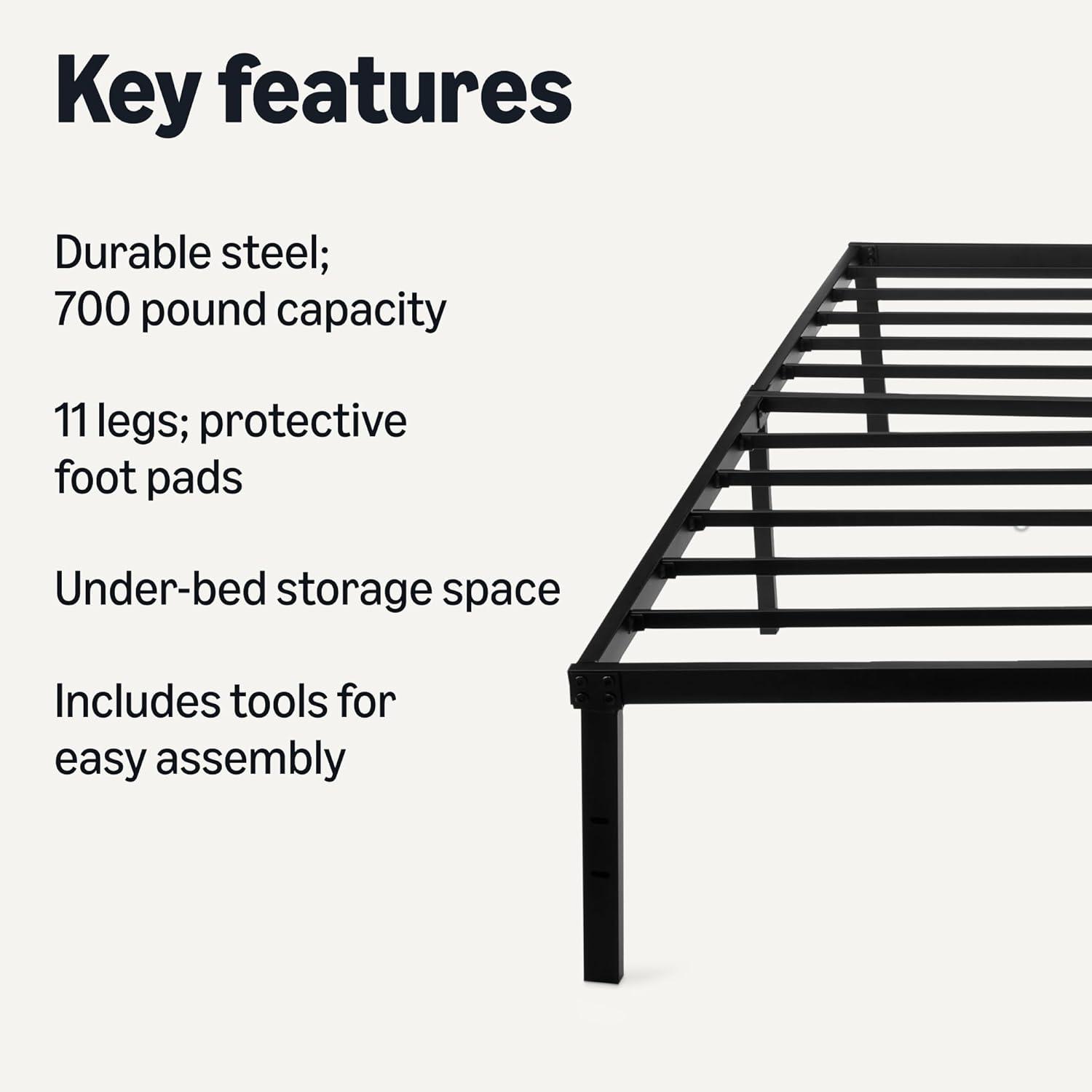 Amazon Basics-Metal Bed Frame, Non-Foldable Platform Bed, Easy Assembly, Queen, 60W x 80L in, Black(Twin)
