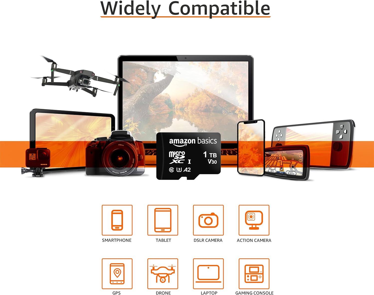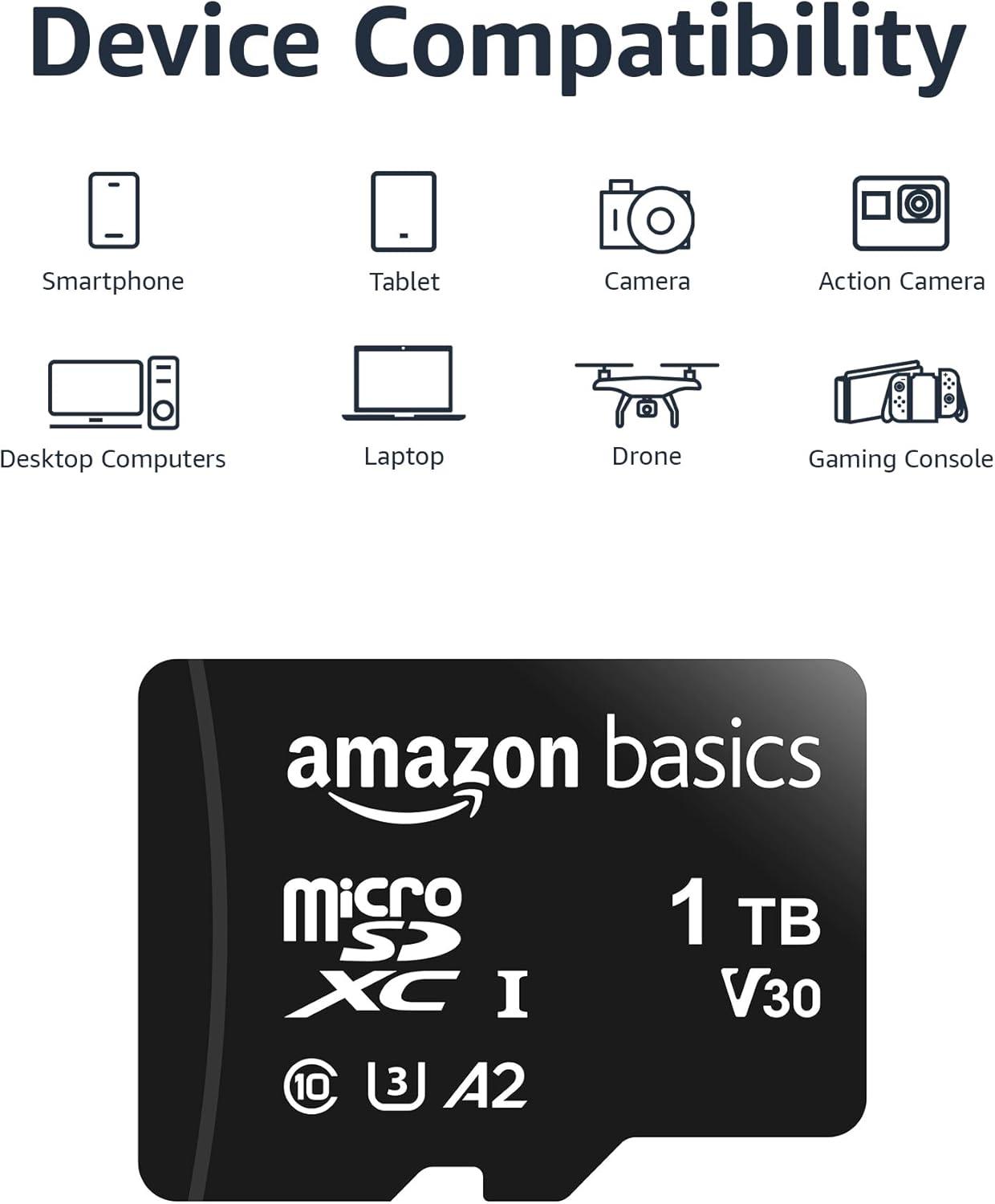 imageAmazon Basics microSDXC Memory Card with Full Size Adapter A2 U3 Read Speed up to 100 MBs 1 Tb Black1TB