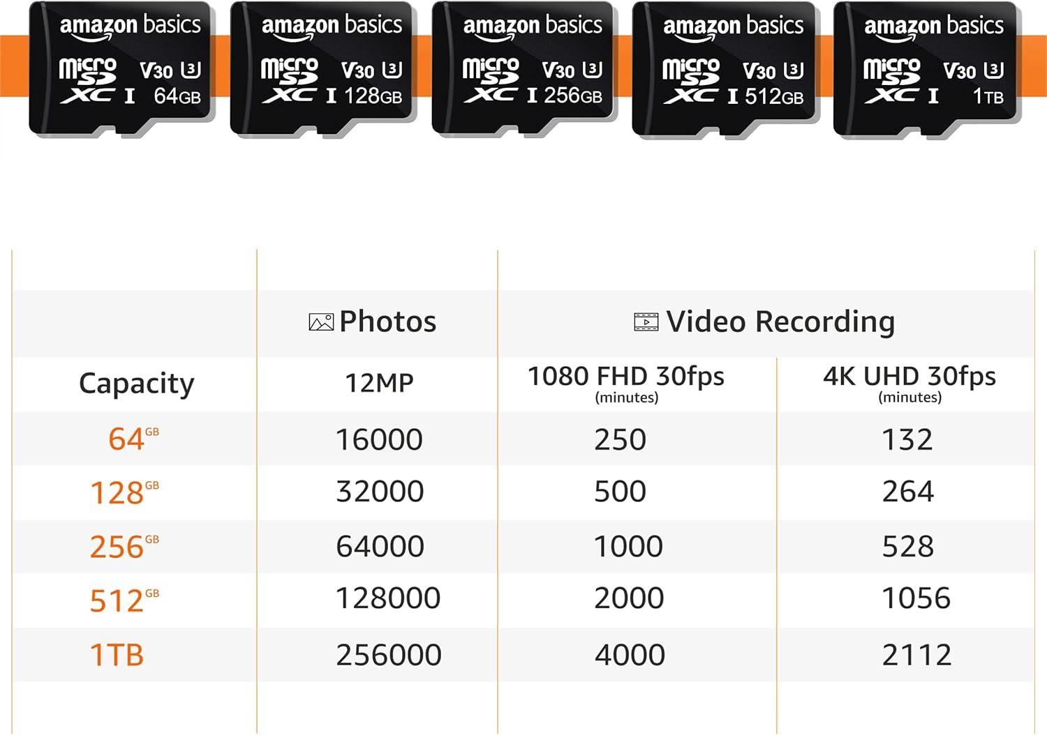 imageAmazon Basics microSDXC Memory Card with Full Size Adapter A2 U3 Read Speed up to 100 MBs 1 Tb Black128GB