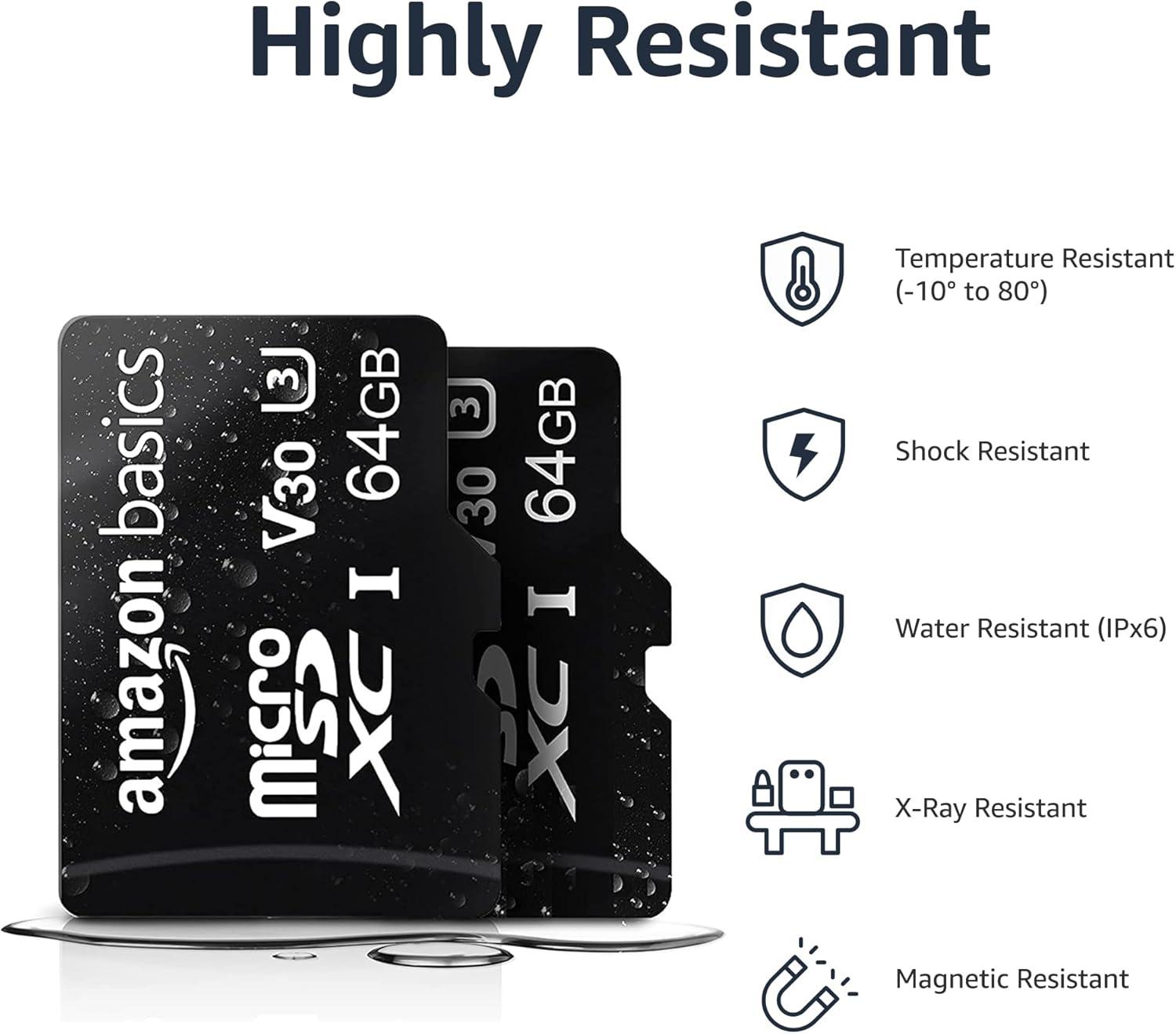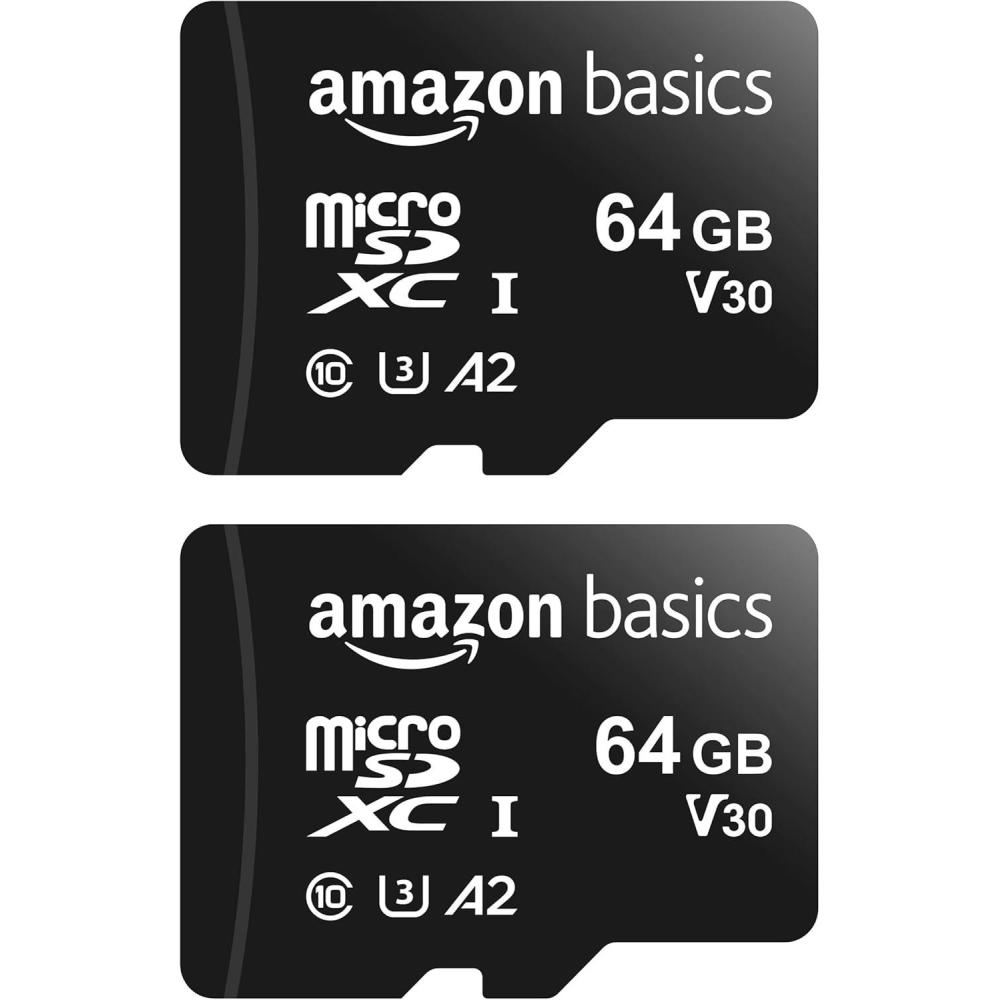 Amazon Basics microSDXC Memory Card with Full Size Adapter, A2, U3, Read Speed up to 100 MB/s, 1 Tb, Black(64GB(2 pack))