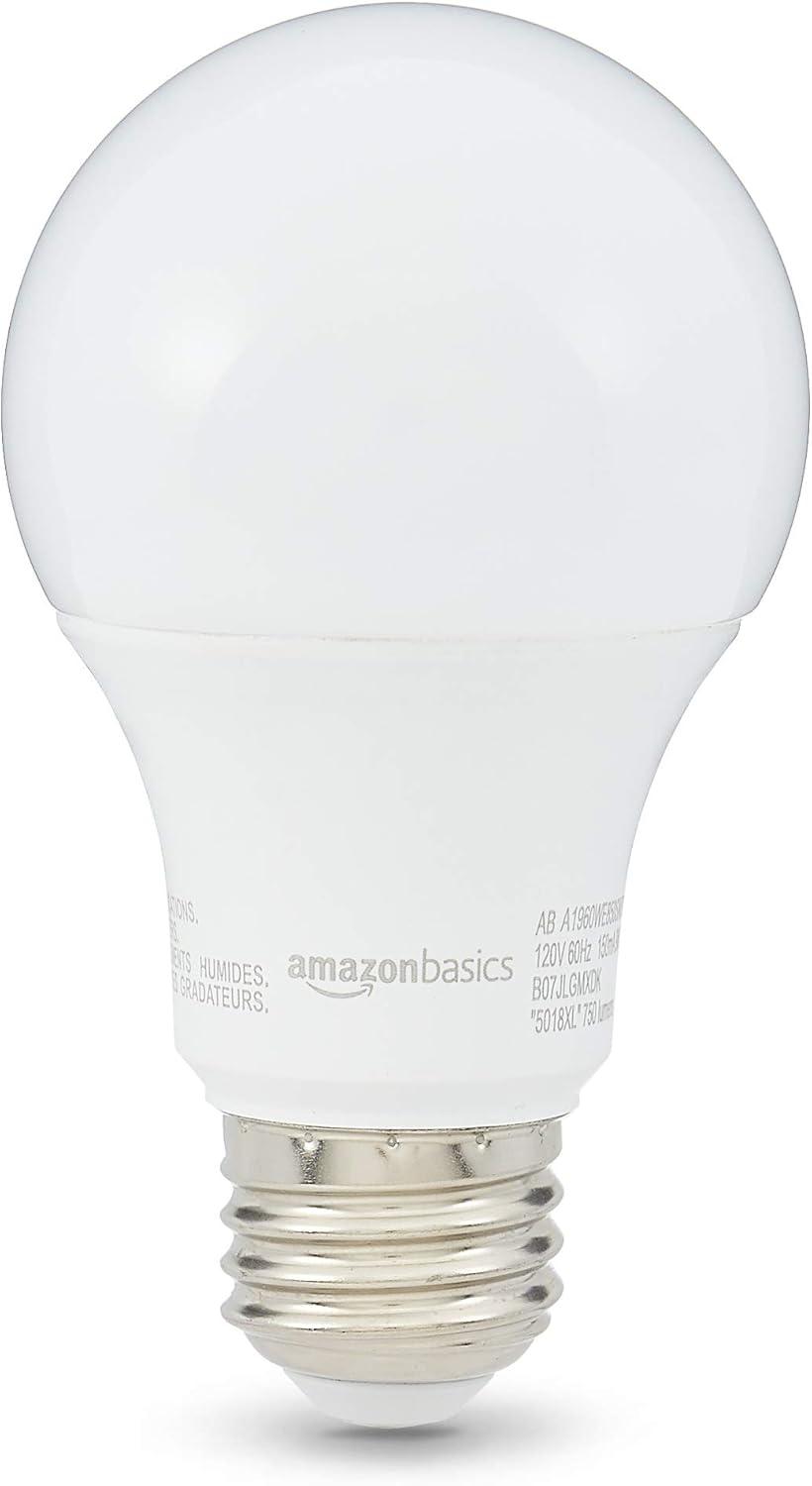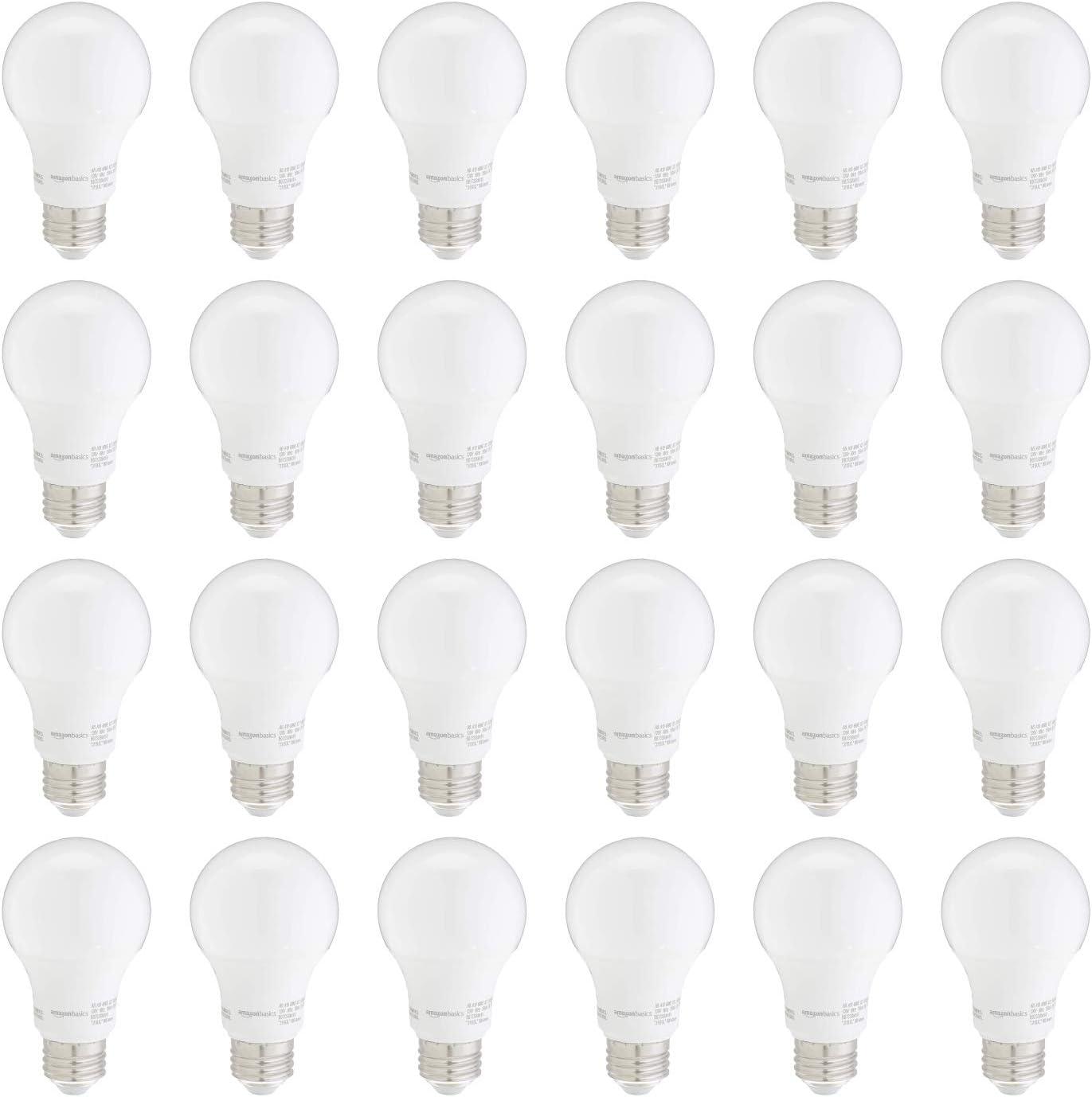 Amazon Basics Non-Dimmable LED Light Bulbs, Long Lasting, 9W, E26 Base, 5000K Daylight White, A19, 60W Equivalent, 24-Pack(Soft White)