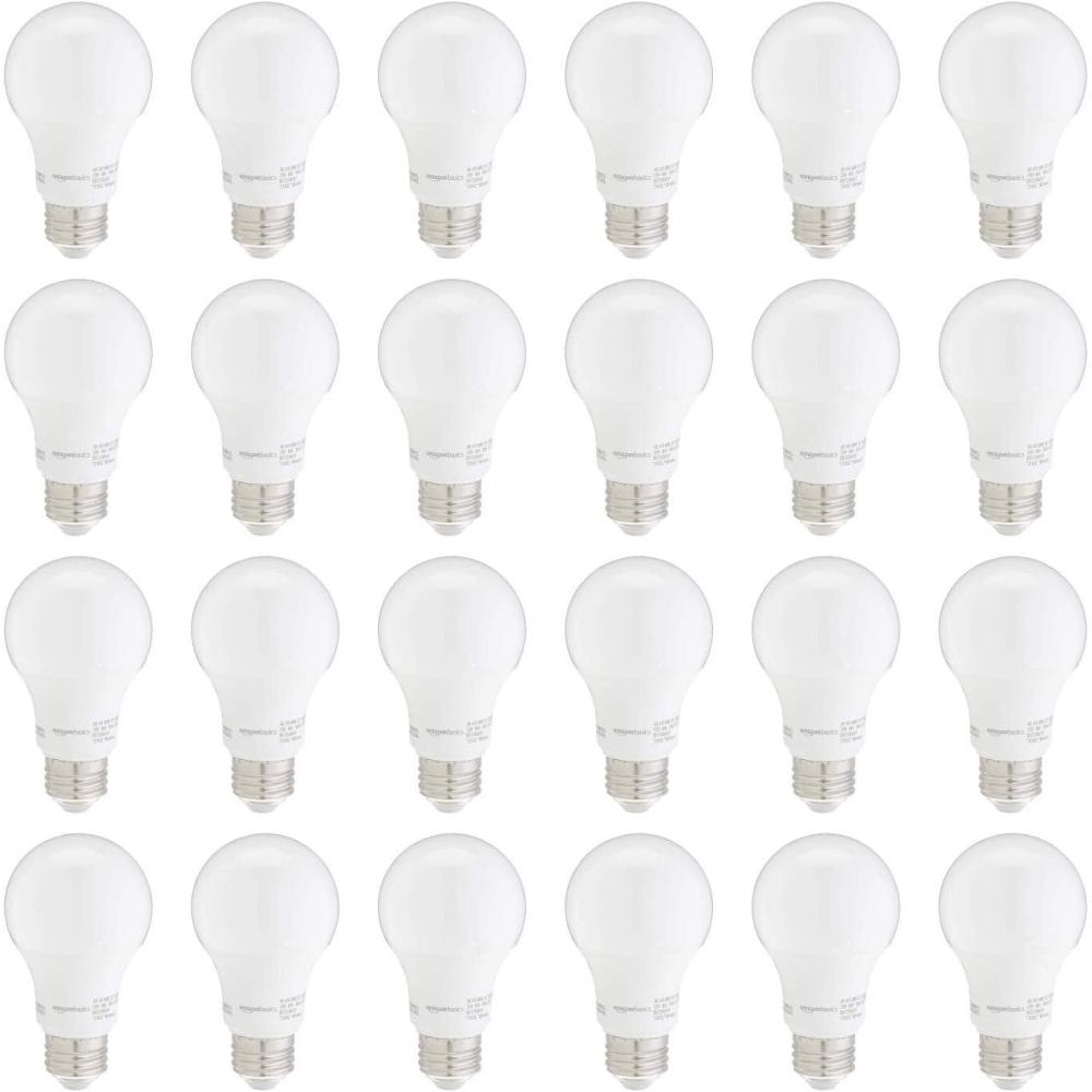 Amazon Basics Non-Dimmable LED Light Bulbs, Long Lasting, 9W, E26 Base, 5000K Daylight White, A19, 60W Equivalent, 24-Pack(Daylight)