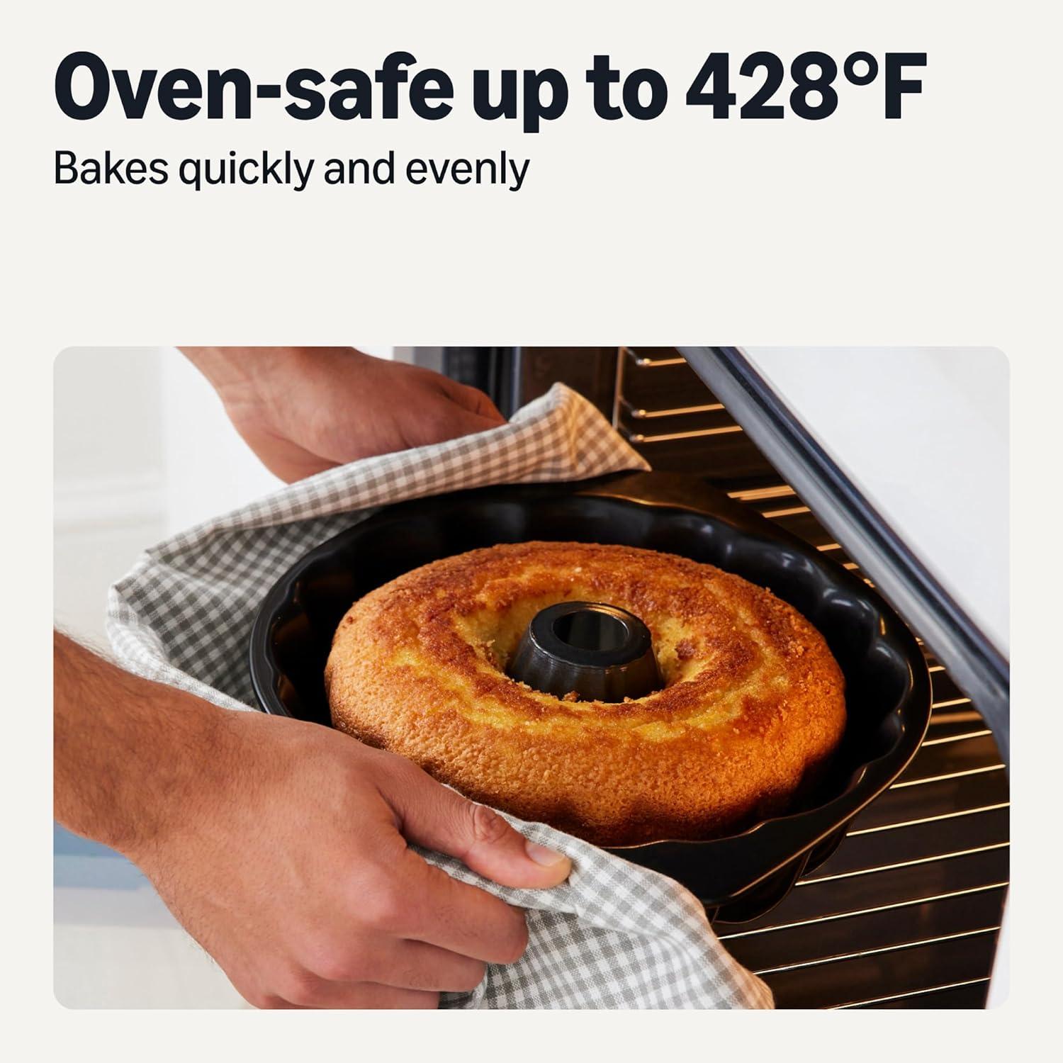 Bake perfect bundt cakes every time with this 10-inch carbon steel pan featuring superior heat conduction and an effortless nonstick coating. Convenient handles and dishwasher-safe design make it a practical choice, while oven-safe temperatures up to 428°F ensure versatile baking performance. Amazon Basics are the quality products you count on for all your everyday moments.
