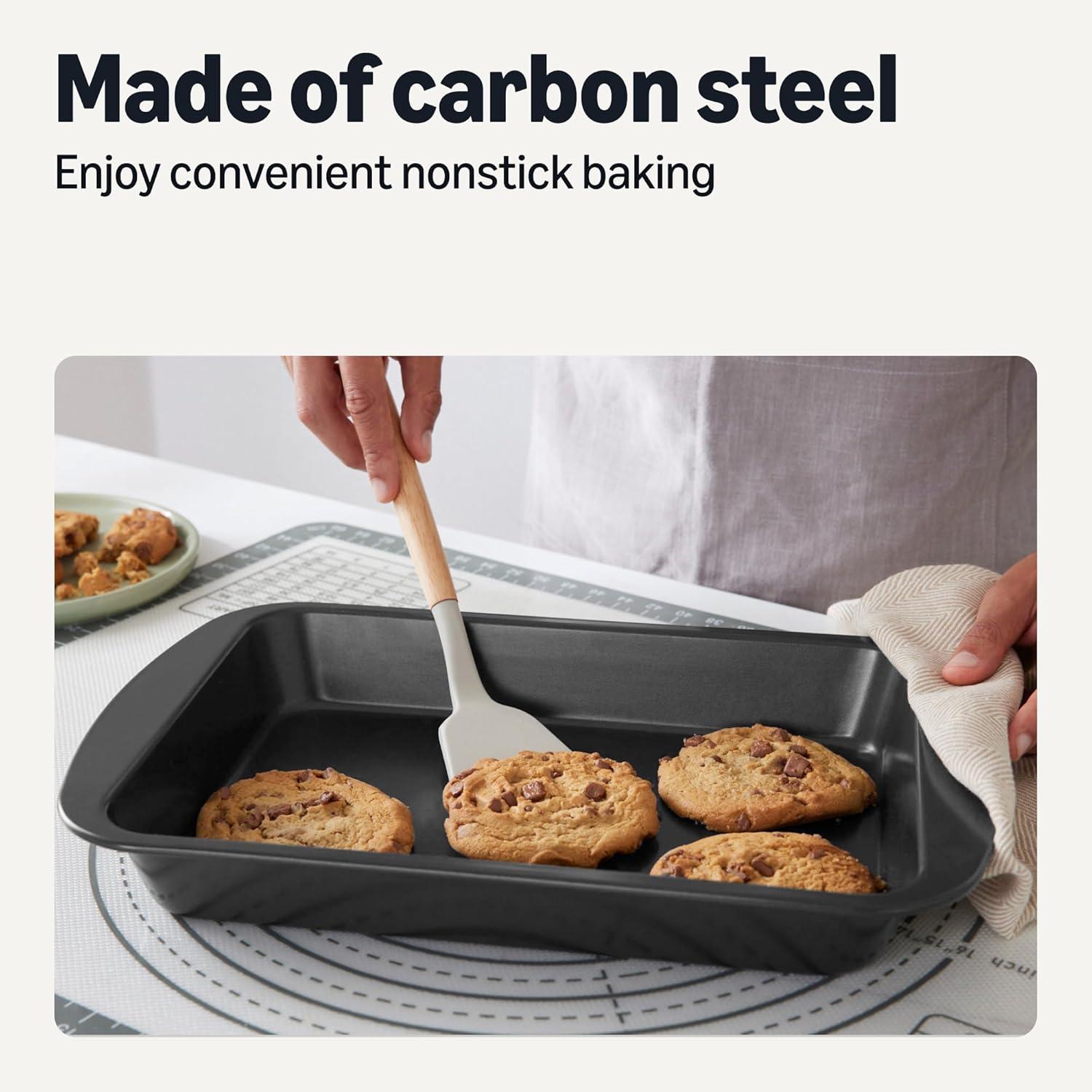 Bake perfect cakes and brownies every time with this 13×9-inch carbon steel pan featuring superior heat conduction and an effortless nonstick coating. Oven-safe to 428°F and dishwasher-safe, this versatile pan makes both baking and cleanup a breeze. Amazon Basics are the quality products you count on for all your everyday moments.