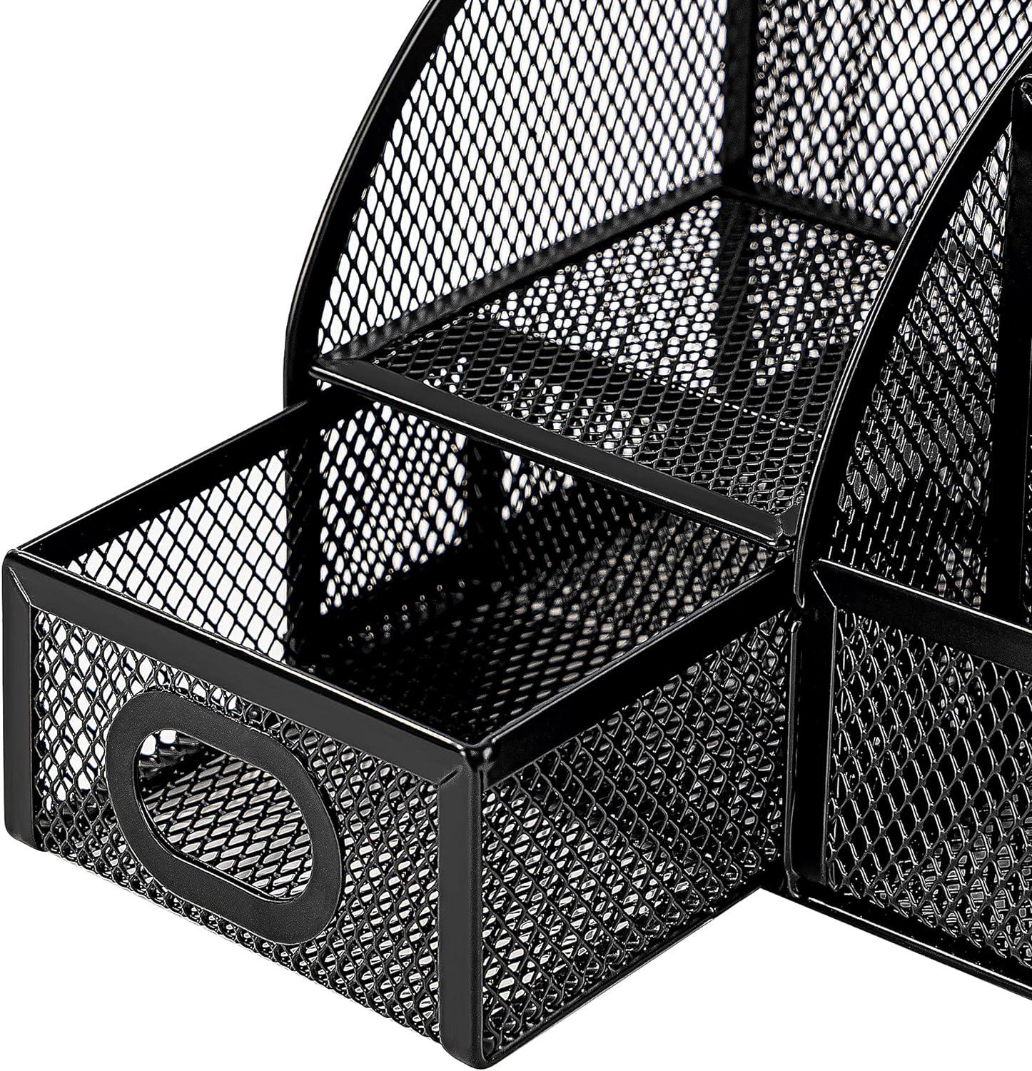 Amazon Basics Pen Holder and Desk Organizer, Office Caddy Storage, Black, ‎9.1″ x 5.9″ x 5.5”(Wire Mesh Pen Cup)