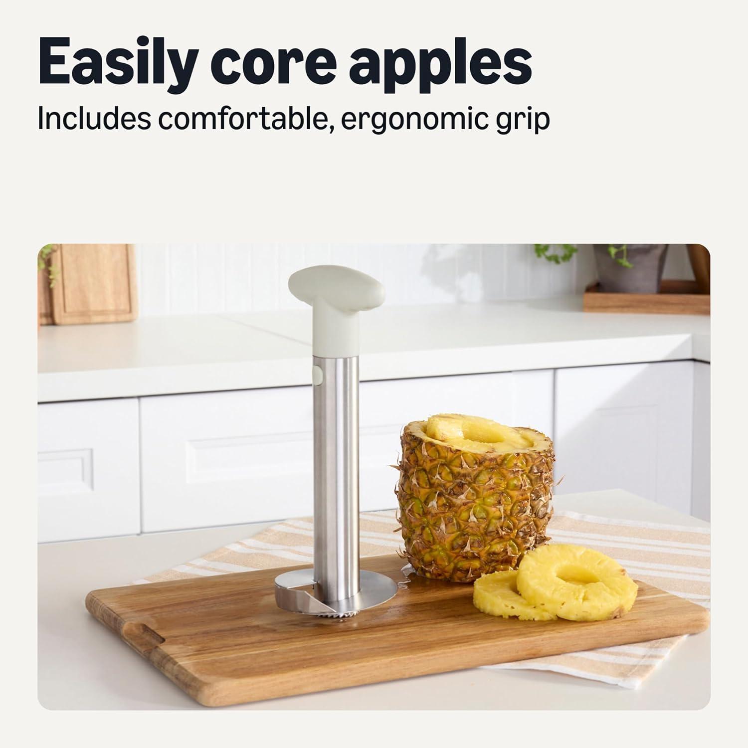 This convenient 2-piece set includes a stainless steel pineapple corer and apple corer, making fruit preparation quick and effortless with sharp serrated blades and ergonomic designs. Both tools are dishwasher-safe, made from food-grade materials, and feature durable construction for long-lasting kitchen use. Amazon Basics are the quality products you count on for all your everyday moments.